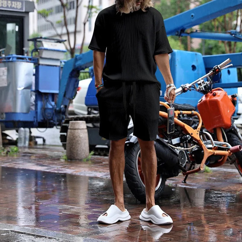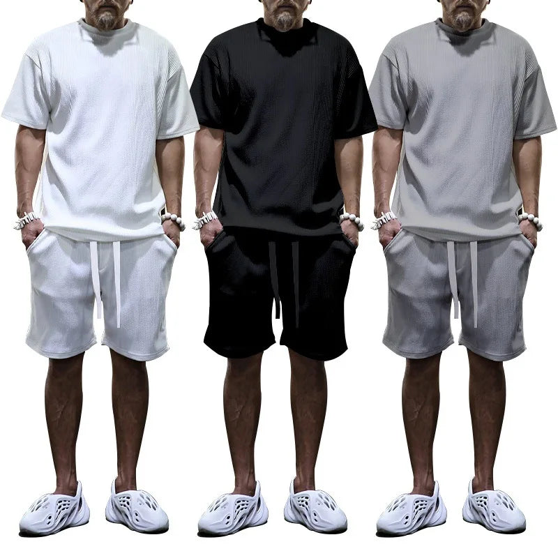 Summer High Quality Men's Clothing Japanese And Korean Style Loose Large Size Cool Casual Short Sleeve Shorts Two-piece Set