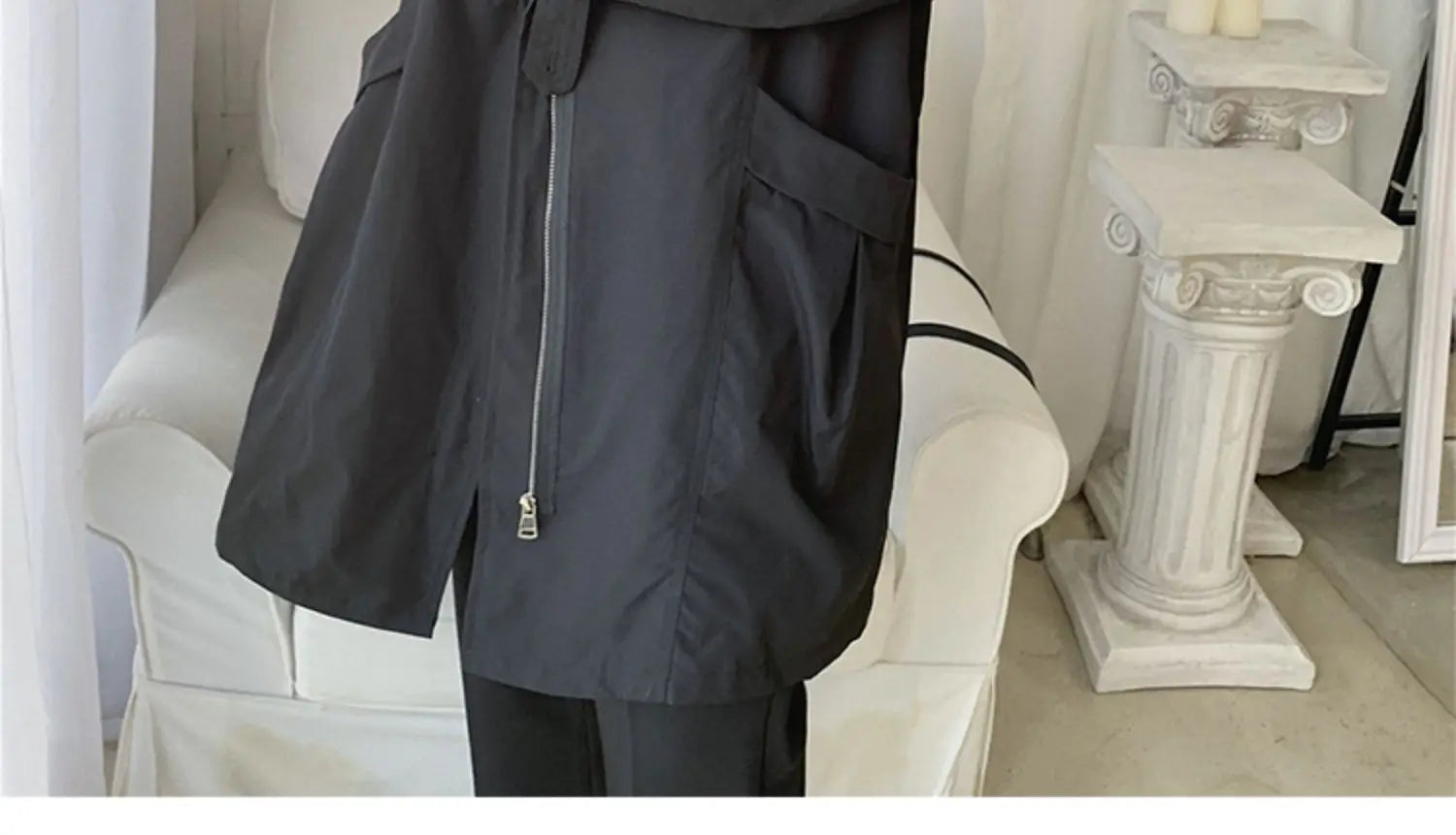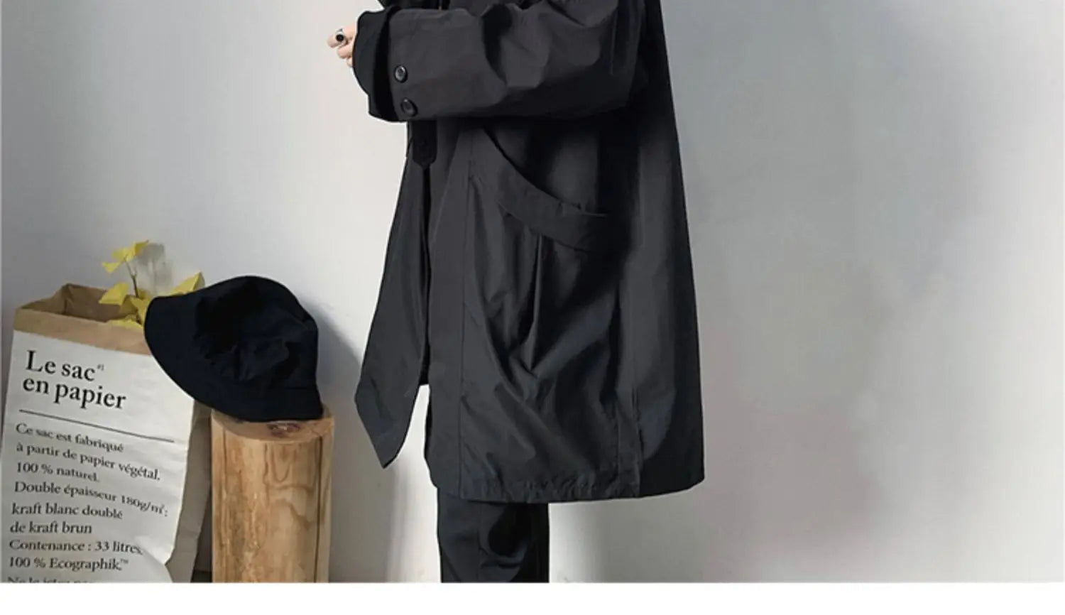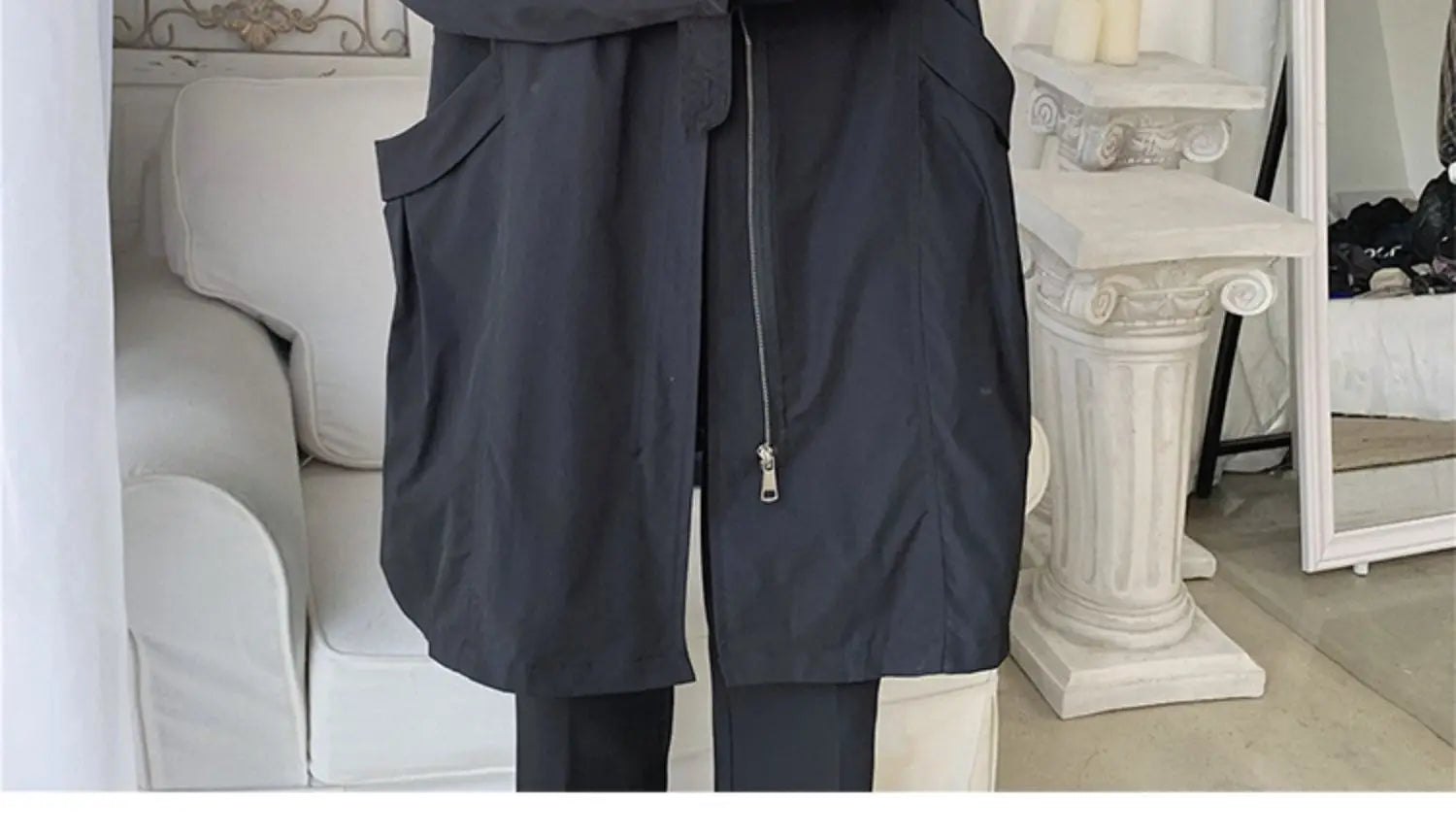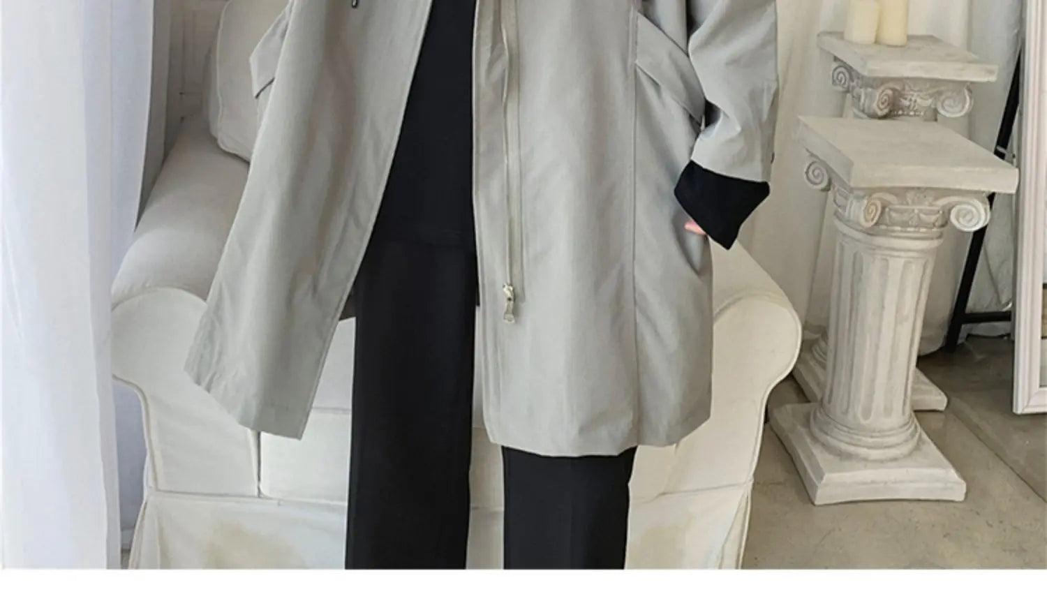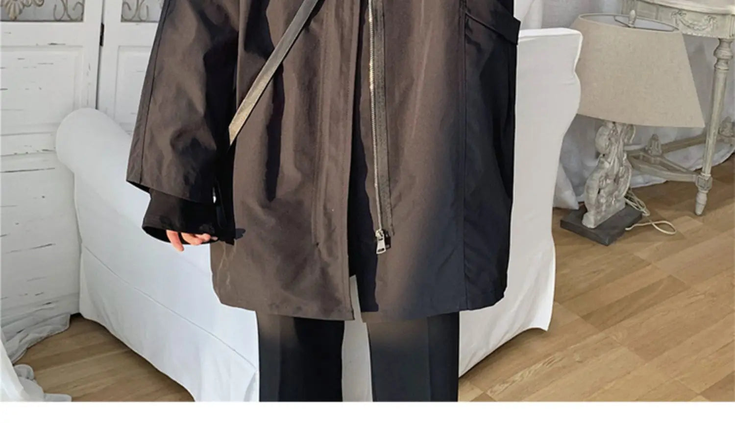 Hooded Trench Men Baggy Zip-up Overcoat Fashion Ulzzang Handsome Daily Pockets Mature Streetwear Personality Spring Autumn Soft