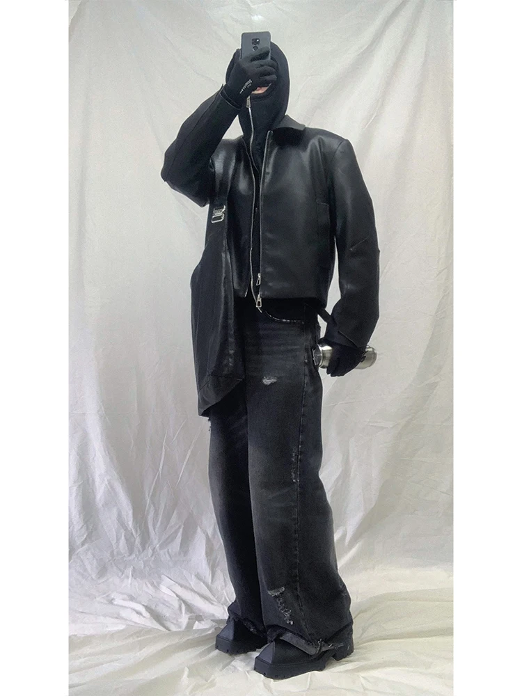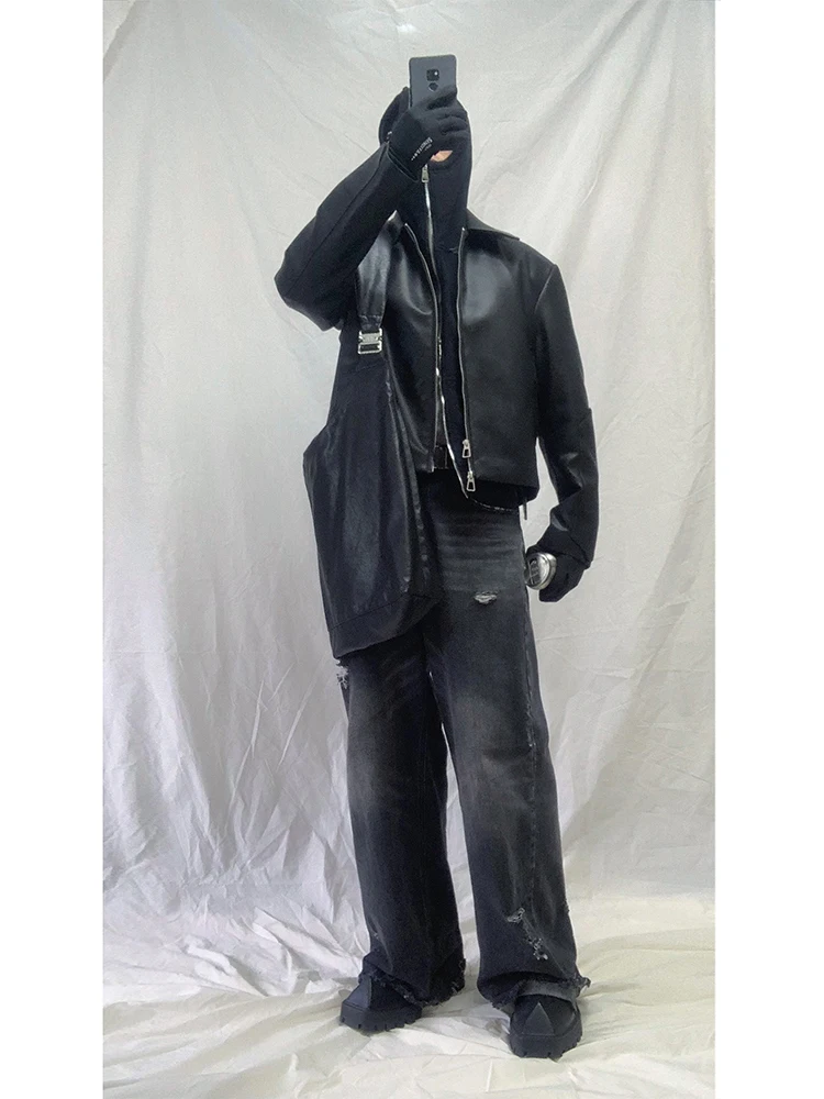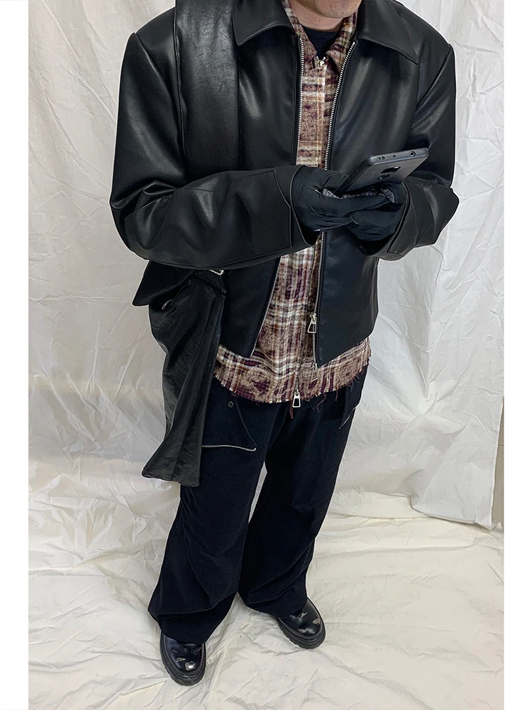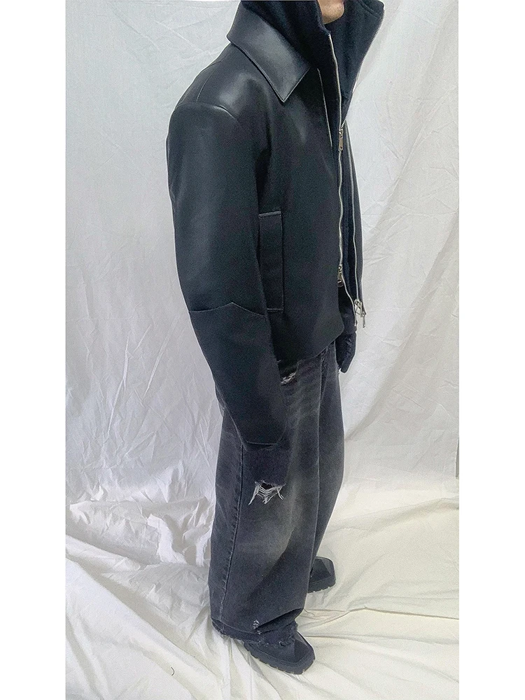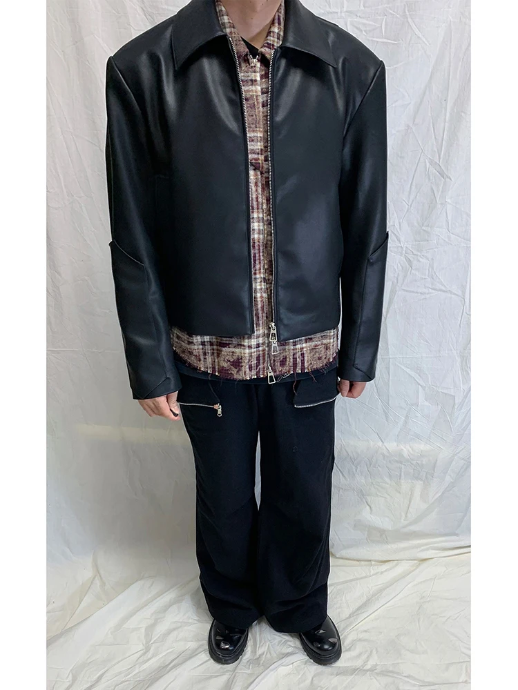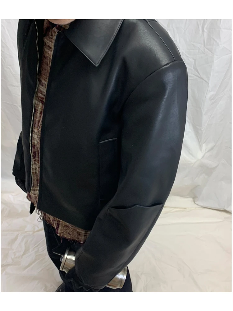 Spring Autumn Black Soft Lightweight Pu Leather Jacket Men Zipper Turn-down Collar Loose Casual Korean Fashion