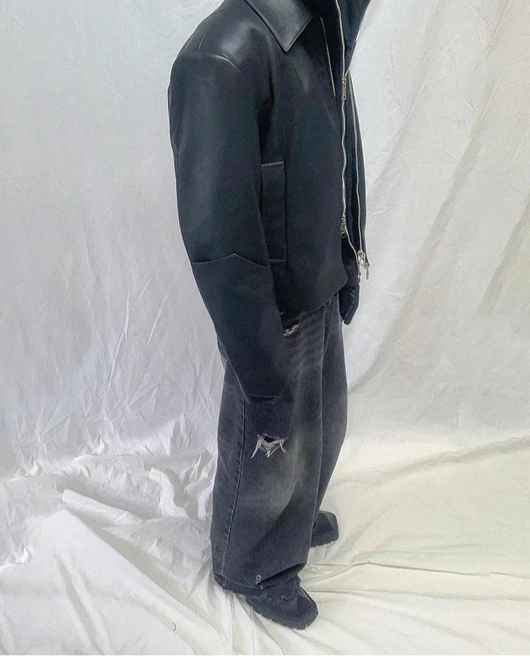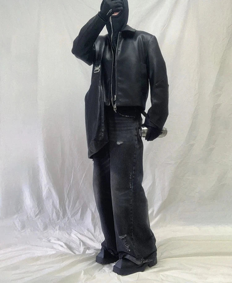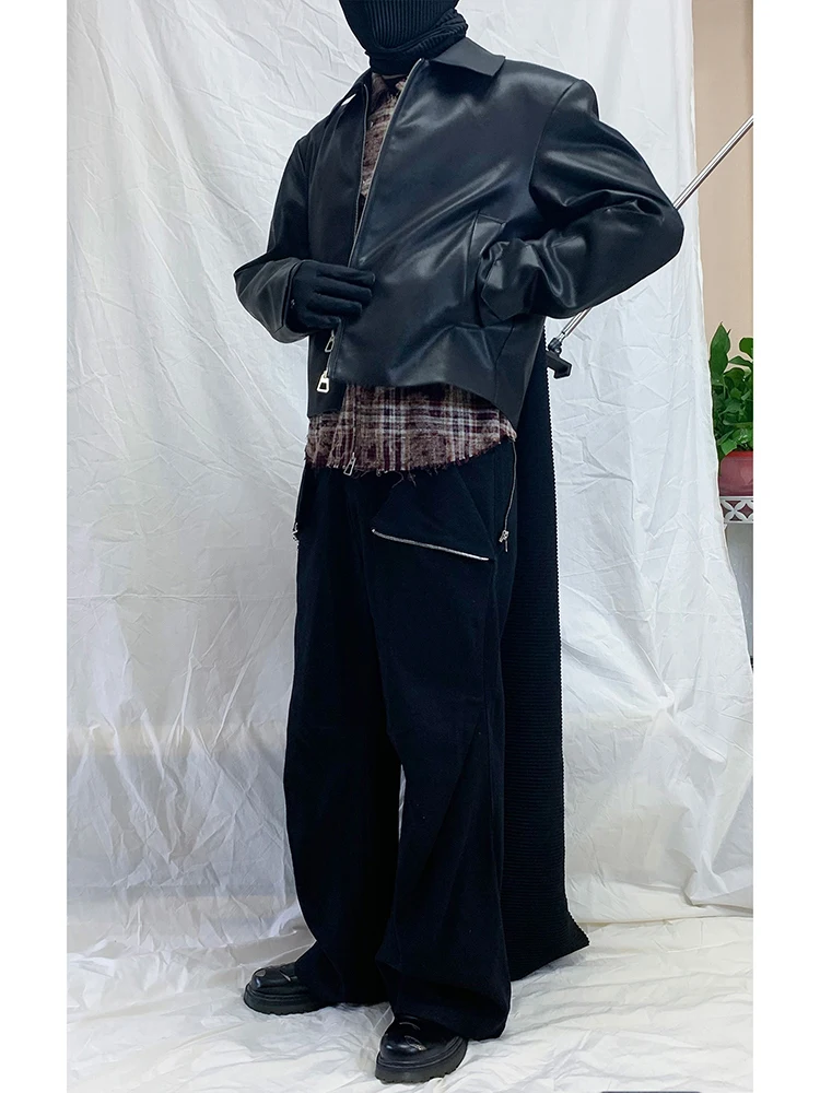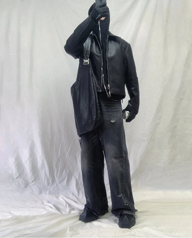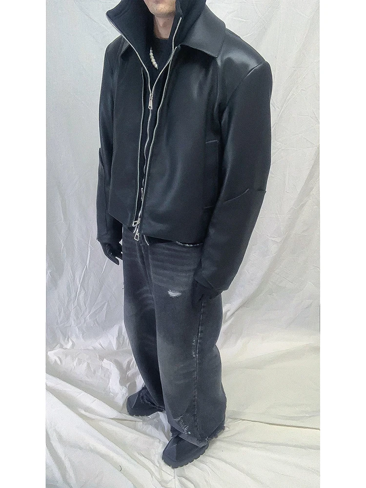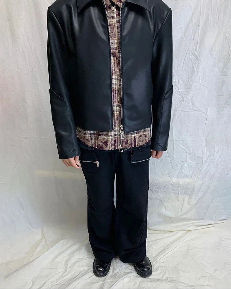 Spring Autumn Black Soft Lightweight Pu Leather Jacket Men Zipper Turn-down Collar Loose Casual Korean Fashion