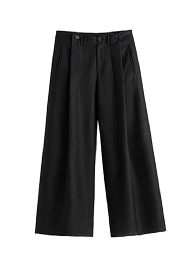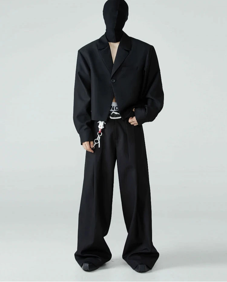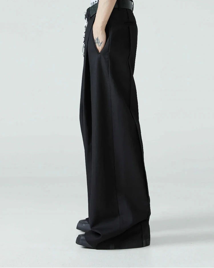 Spring Autumn Long Loose Casual Baggy Flowy Soft Black Pleated Wide Leg Pants Men Luxury Designer Emo Clothing