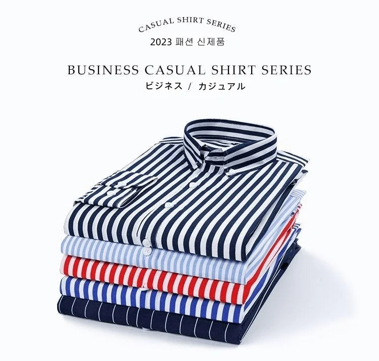 Men's Striped Shirts Long Sleeve Dress Shirts Spring Summer Casual Korean Fashion Slim Button Formal Men's Clothing Shirts