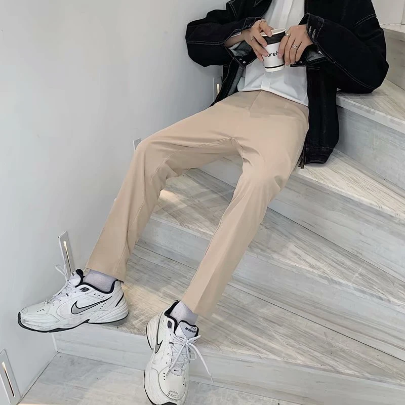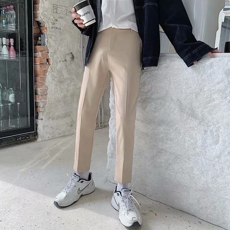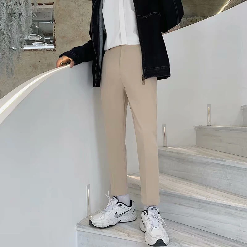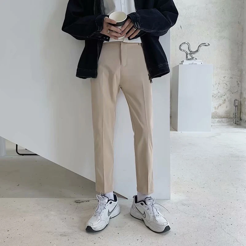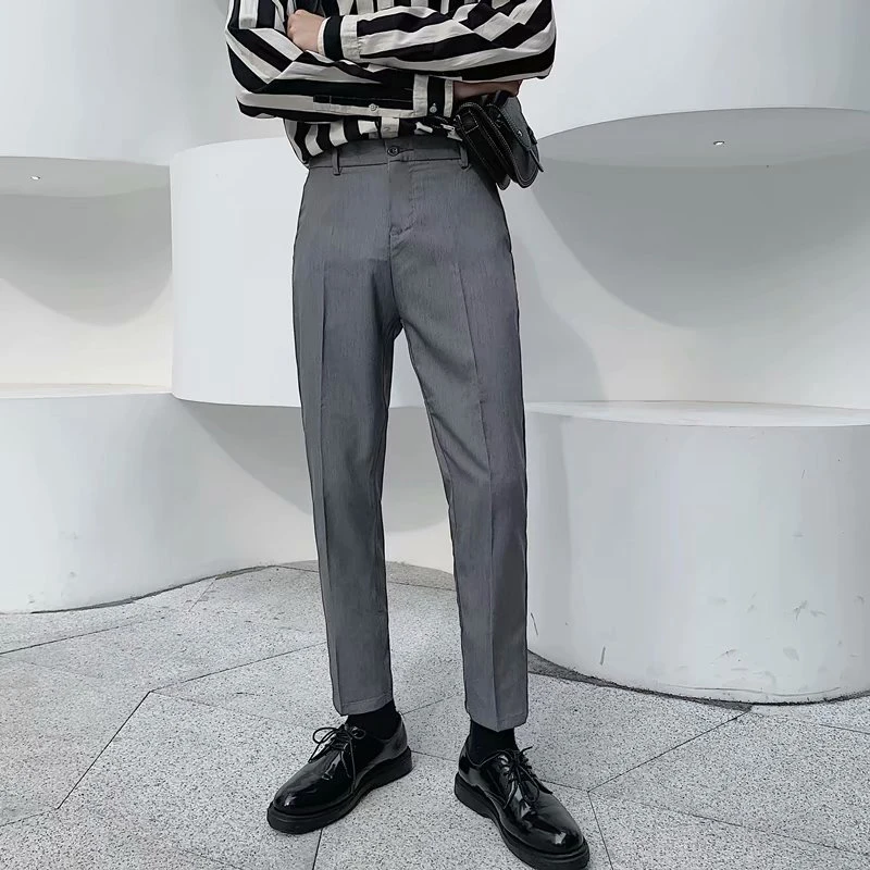 Spring Summer Fashion Mens Suit Trousers Casual Solid Color Pleated Pencil Pants For Men Trendy Slim Fit Straight Trousers