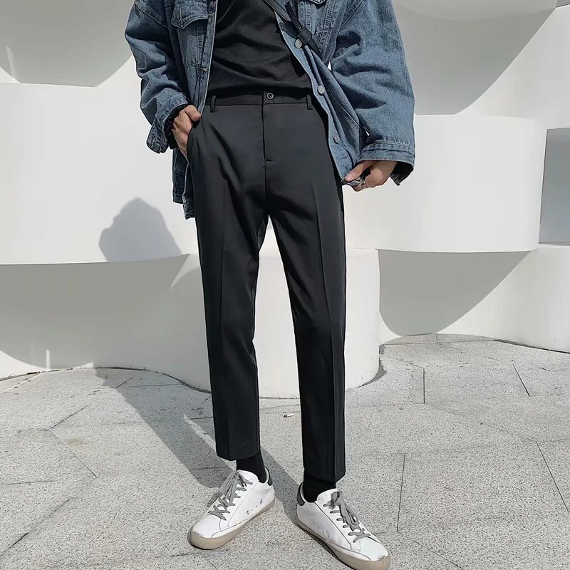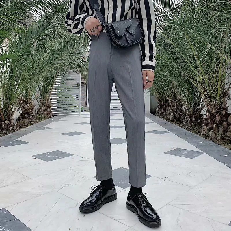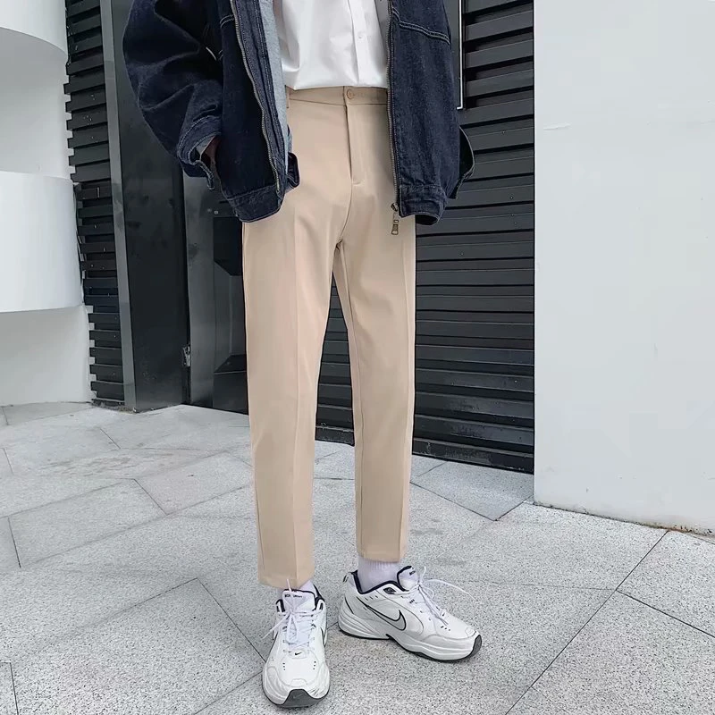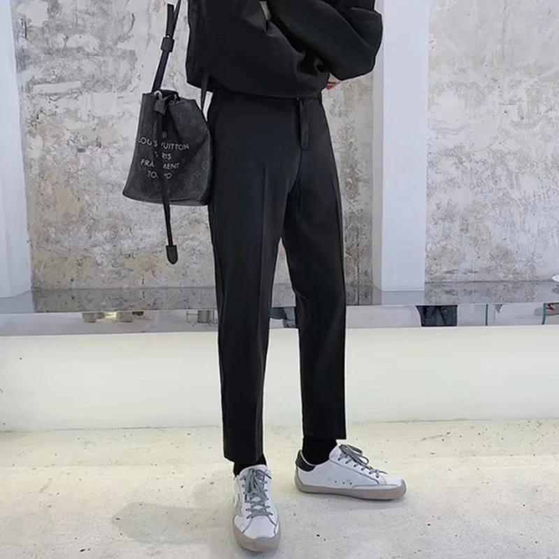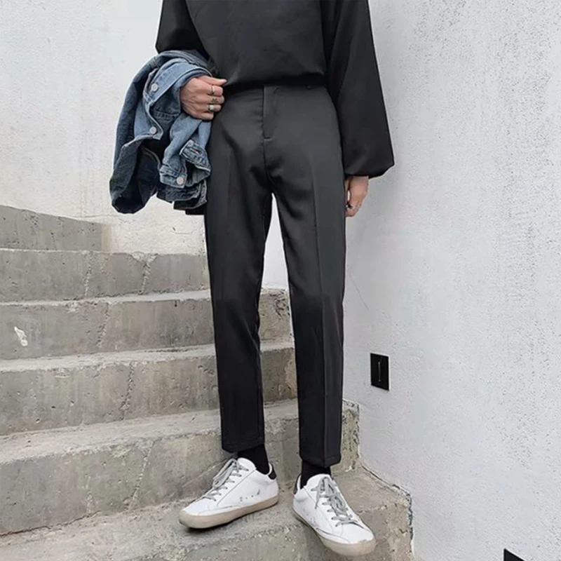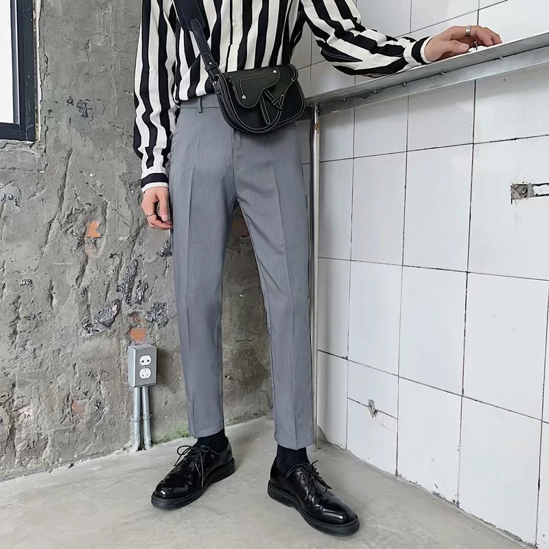 Spring Summer Fashion Mens Suit Trousers Casual Solid Color Pleated Pencil Pants For Men Trendy Slim Fit Straight Trousers