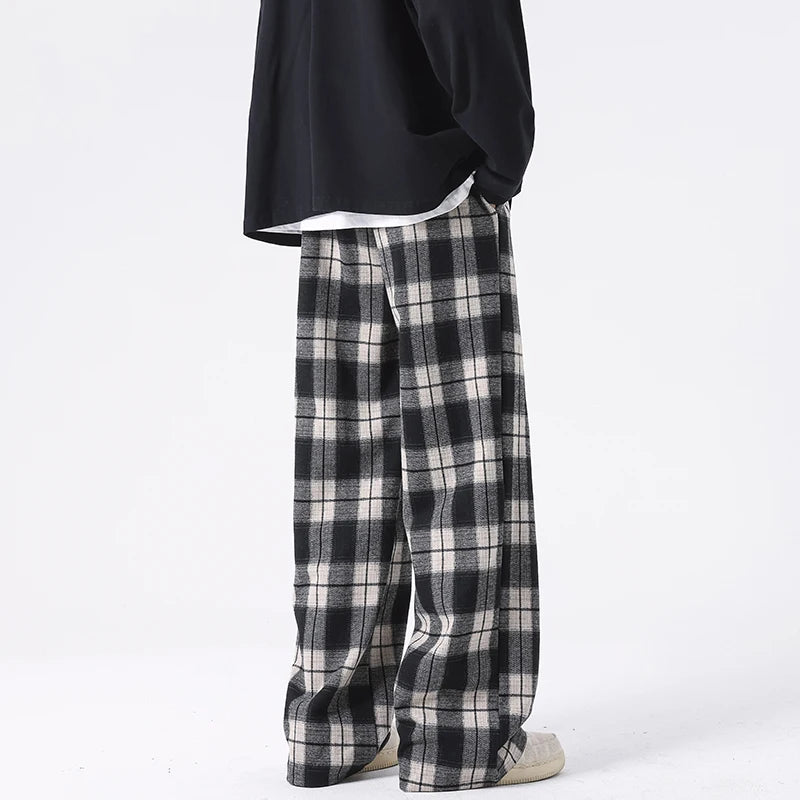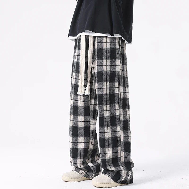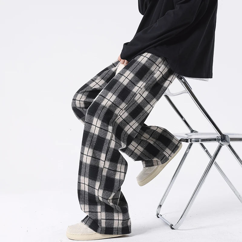 Told Tale Plus Size Spring Casual Plaid Pants Men Wide Leg Couple Straight Pantalones Harajuku Mopping Oversize 8XL 7XL