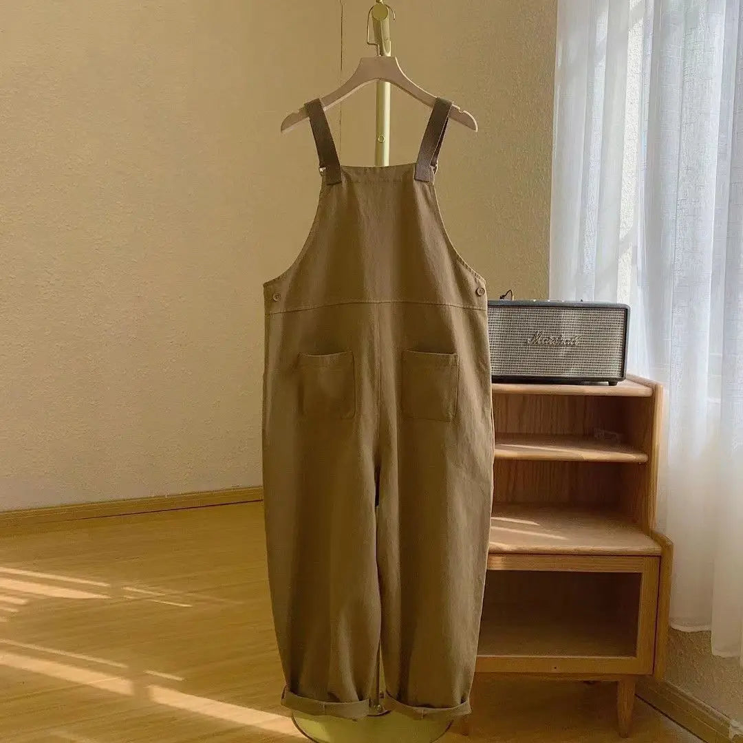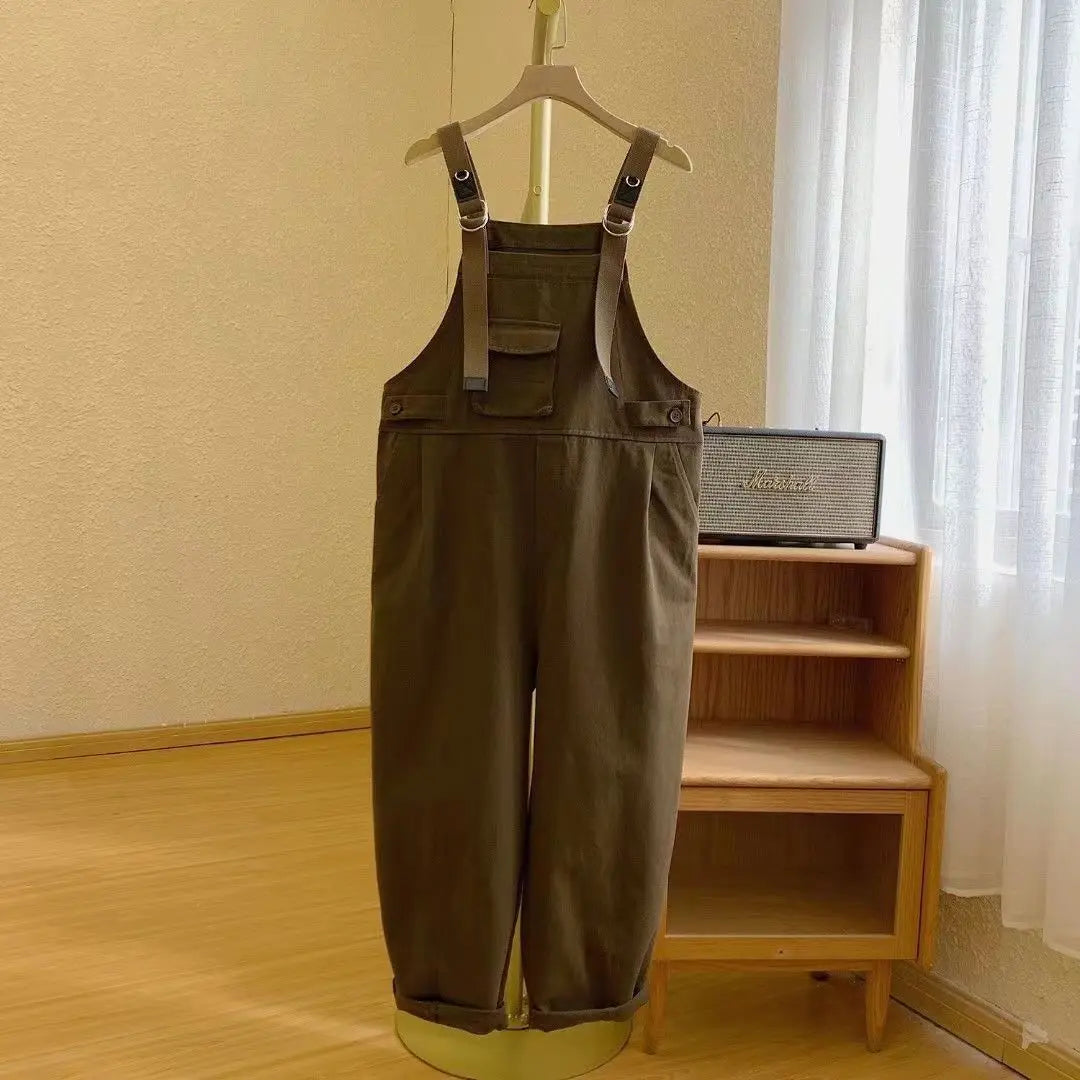 American High-end Denim Overalls Korean High Street Loose Trendy Large-size Tooling Suspender Jumpsuit Aesthetic Chic Streetwear