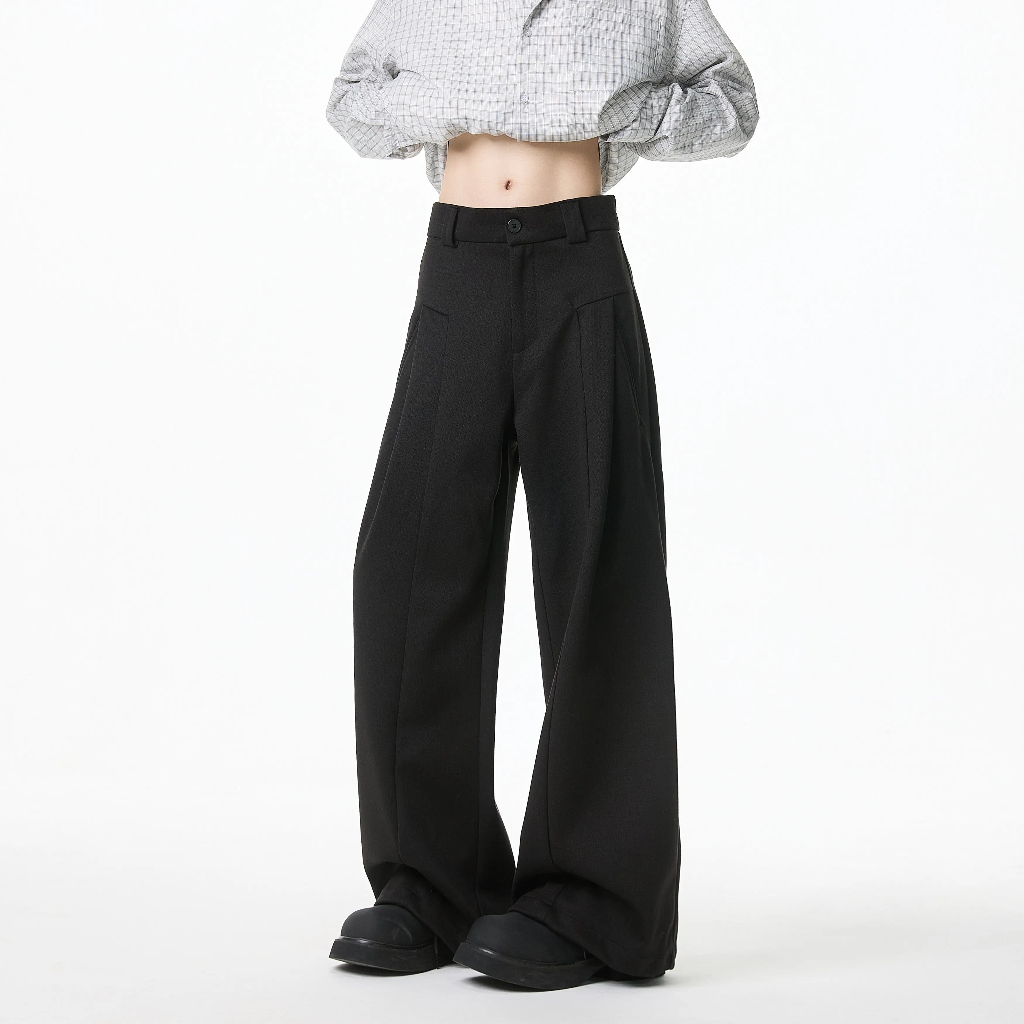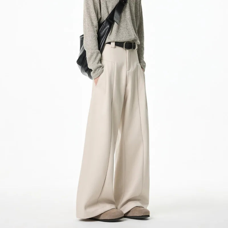 Apricot Black Suit Pants Men Society Mens Dress Pants Korean Loose Wide Leg Pants Mens Office Formal Trousers Large Size 4XL