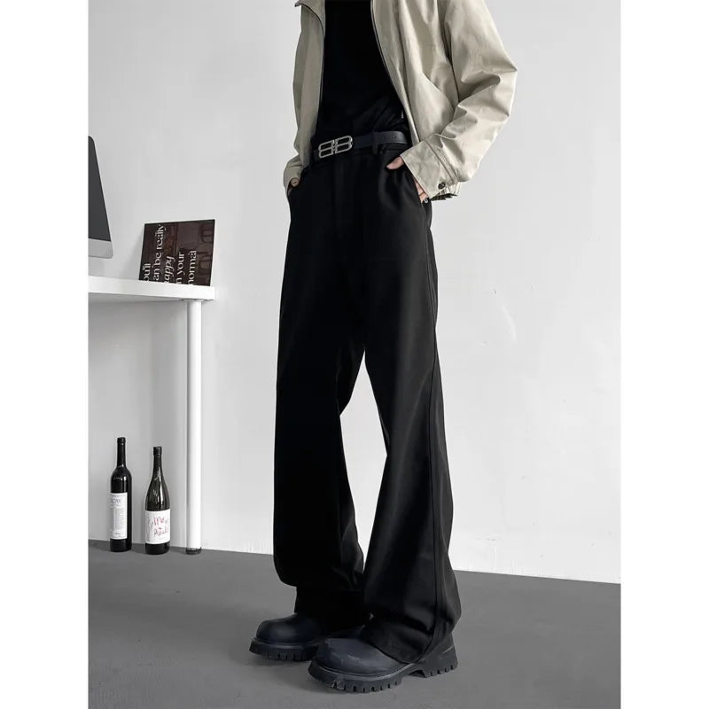Black Suit Pants Men Fashion Society Mens Dress Pants Korean Casual Loose Straight Pants Mens Office Formal Trousers M-3XL