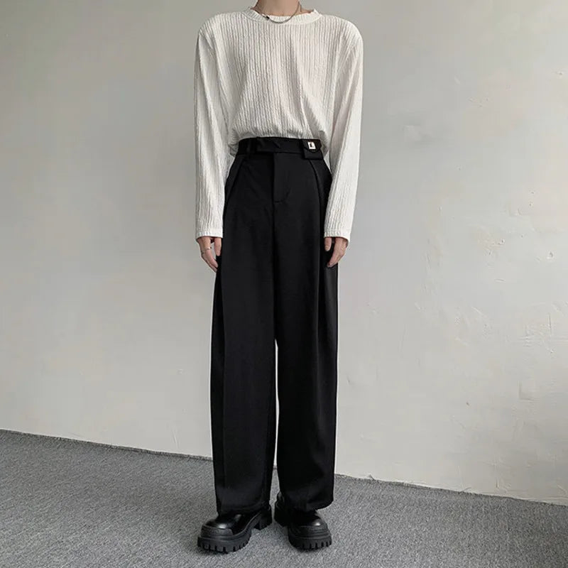 Black Suit Pants Men Oversized Fashion Social Mens Dress Pants Korean Loose Straight Wide Leg Pants Mens Office Formal Trousers