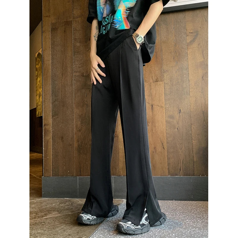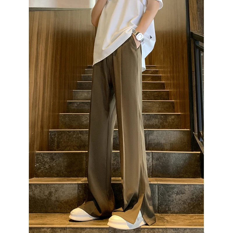 Brown Black Baggy Suit Pants Men Fashion Social Mens Dress Pants Korean Loose Straight Flared Pants Mens Office Formal Trousers