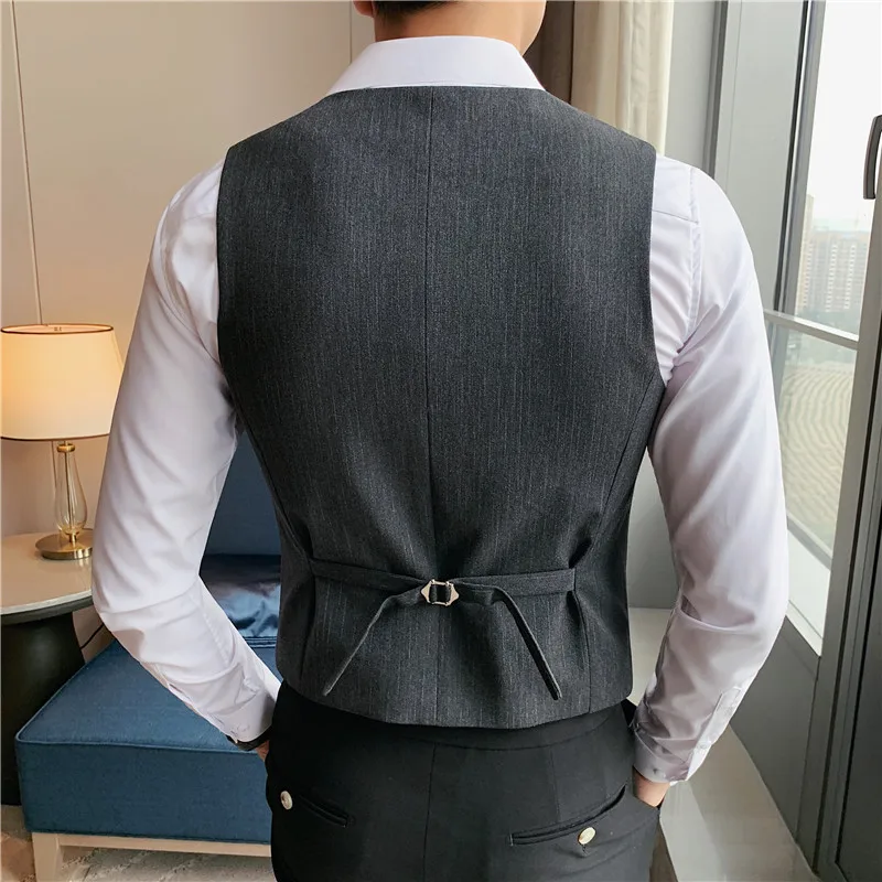 England Men's Suit Vest Pinstripe Slim Fit Sleeveless Gilet Formal Groomsman Waistcoat Business Gentleman Work Dress Suit Vests