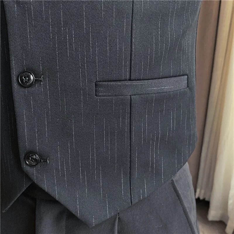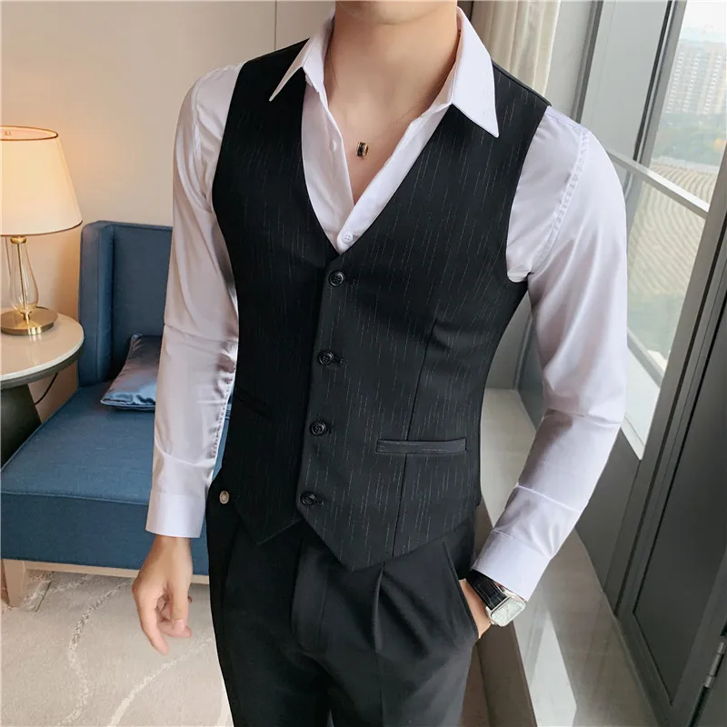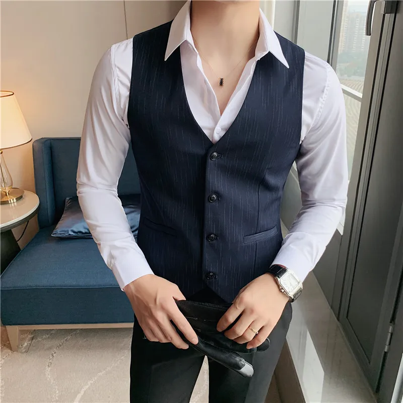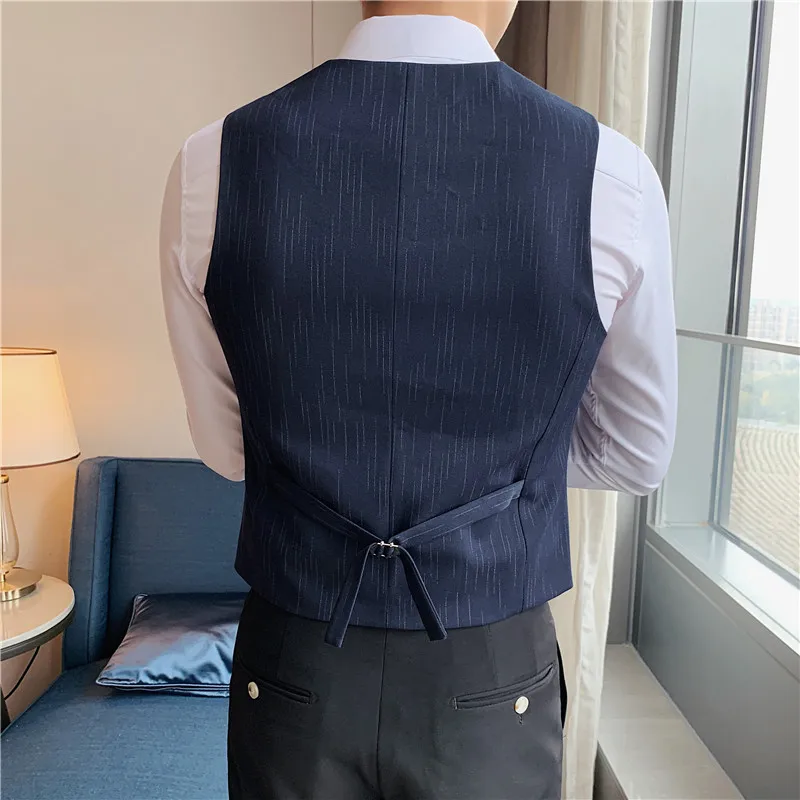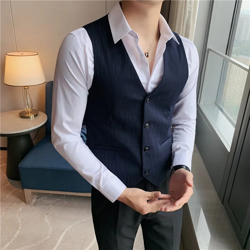 England Men's Suit Vest Pinstripe Slim Fit Sleeveless Gilet Formal Groomsman Waistcoat Business Gentleman Work Dress Suit VestsHign-concerned Chemical: None