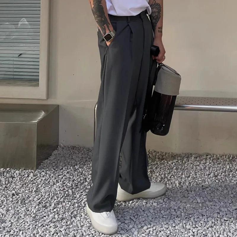 Gray Suit Pants Men Fashion Business Society Mens Dress Pants Korean Loose Straight Pants Mens Office Formal Trousers M-2XL