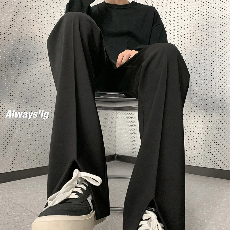 Grey Black Suit Pants Men Fashion Society Mens Dress Pants Korean Loose Straight Pants Mens Office Formal Trousers M-3XL