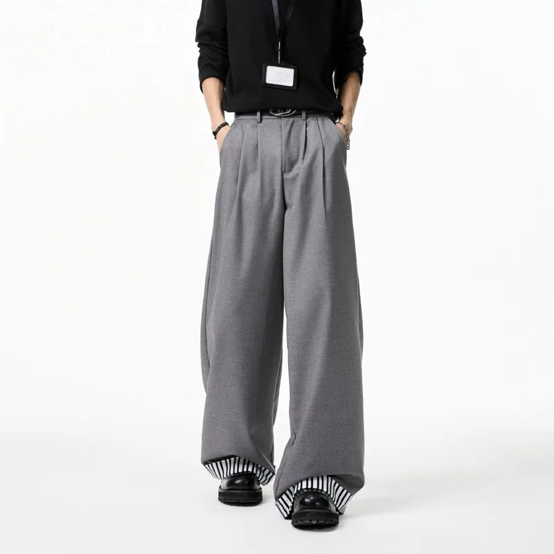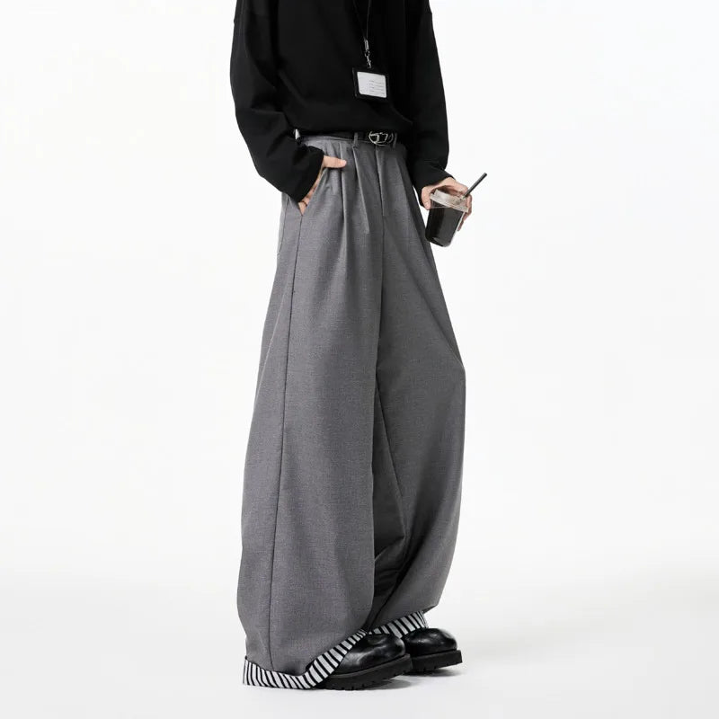 Grey Black Suit Pants Men Oversized Society Mens Dress Pants Korean Casual Loose Wide Leg Pants Mens Office Formal Trousers