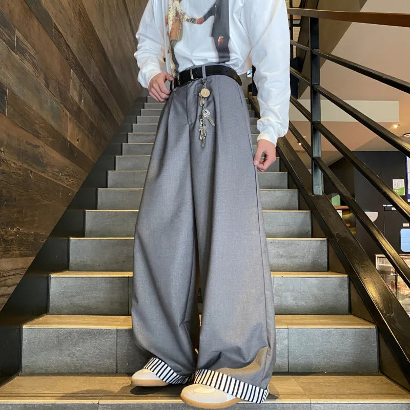 Grey Suit Pants Men Fashion Society Mens Black Dress Pants Korean Loose Casual Wide Leg Pants Mens Office Formal Trousers 4XL