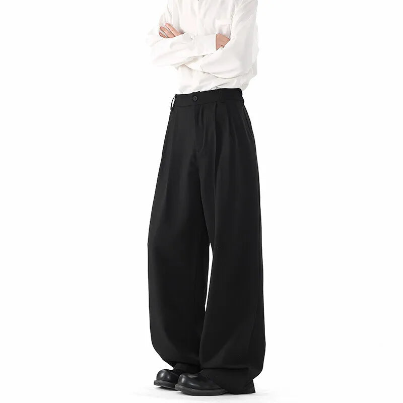 Grey Suit Pants Men Oversized Fashion Society Mens Black Dress Pants Korean Loose Straight Pants Mens Office Formal Trousers