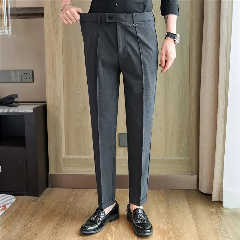 Men Suit Pants Trousers Spring Elastic Waist Solid Slim Fit Dress Pants Office Business Casual High Quality Men's Clothing