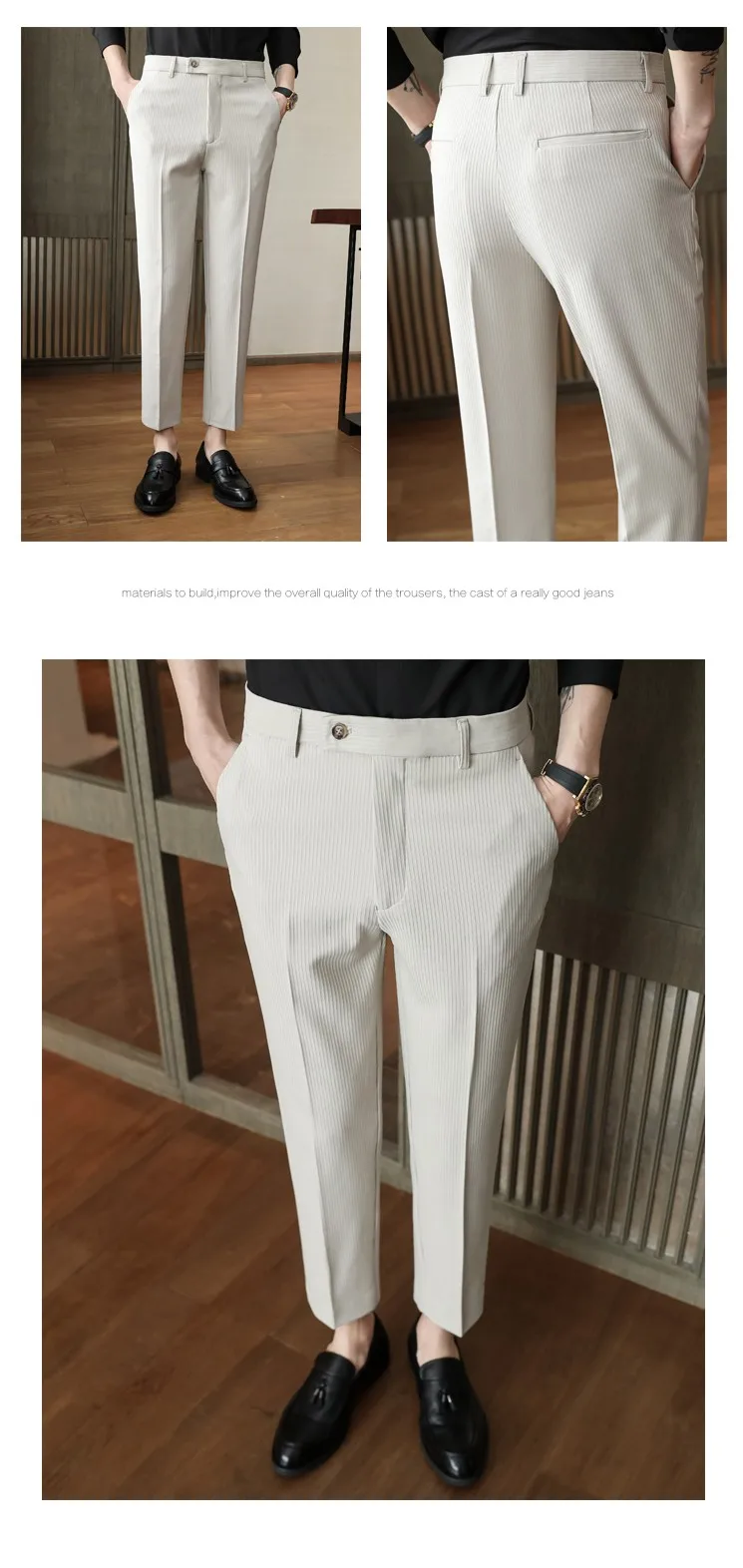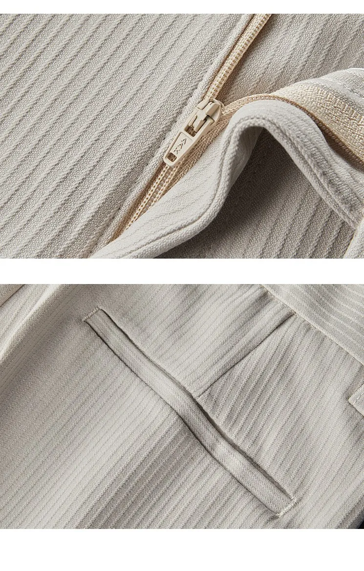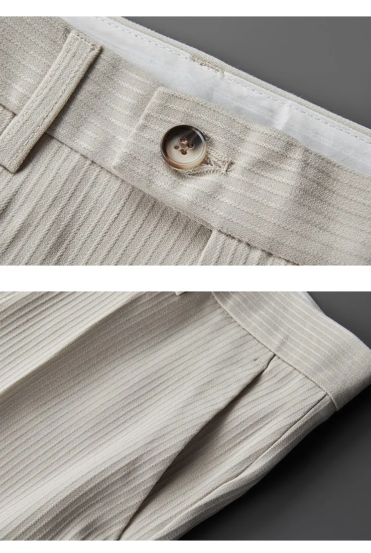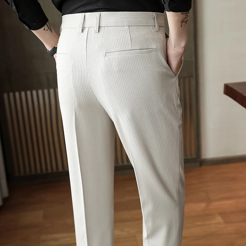 Spring Autumn Men Pinstripe Suit Pants Korean Style Solid Business Casual Work Trousers Fit Slim Black Beige