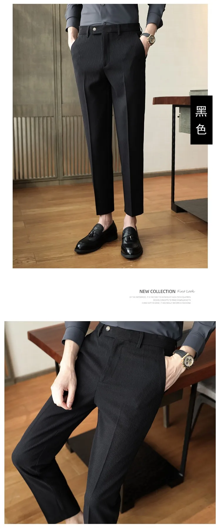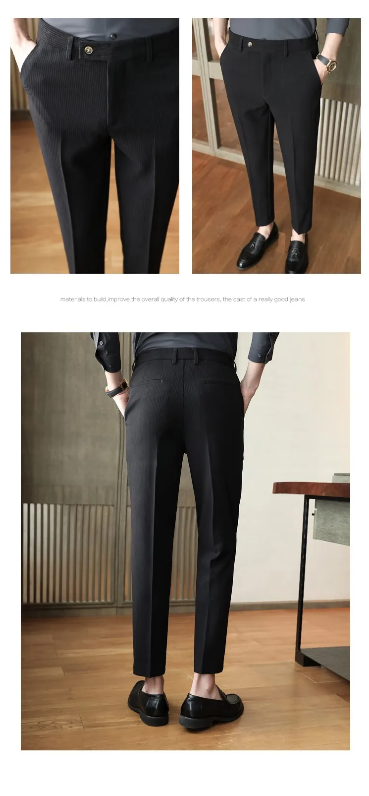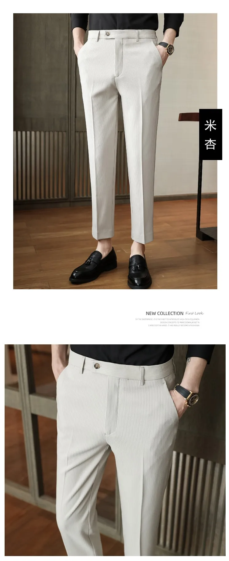 Spring Autumn Men Pinstripe Suit Pants Korean Style Solid Business Casual Work Trousers Fit Slim Black Beige