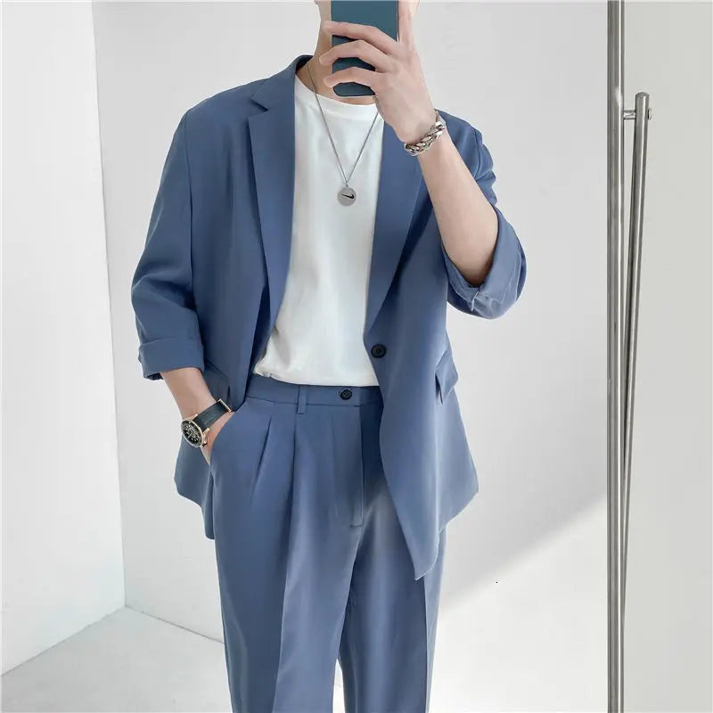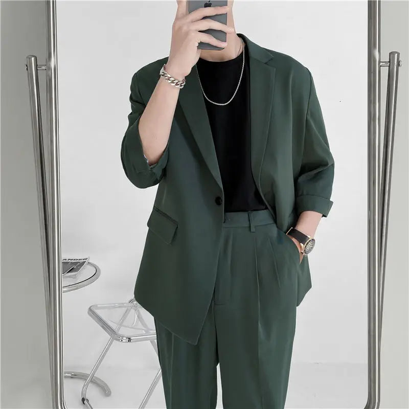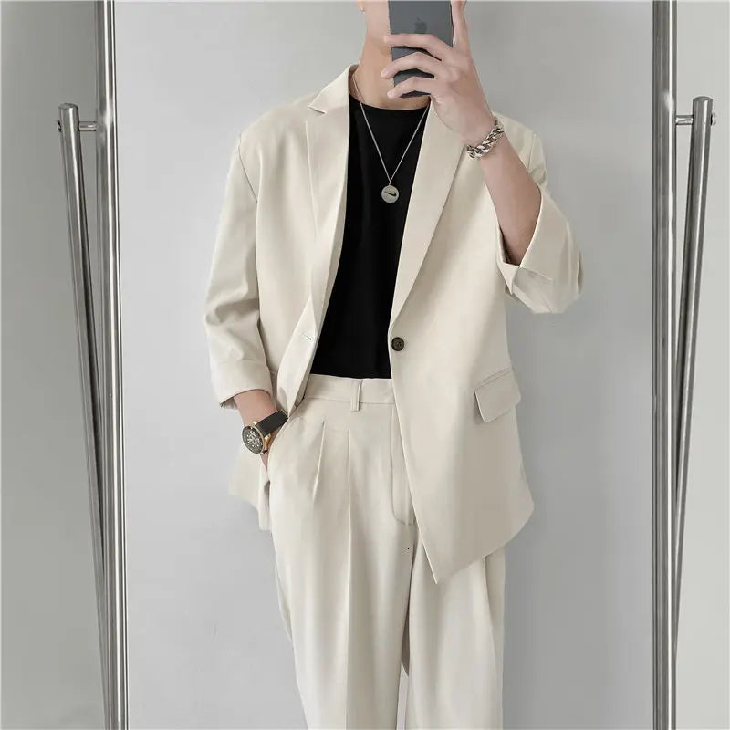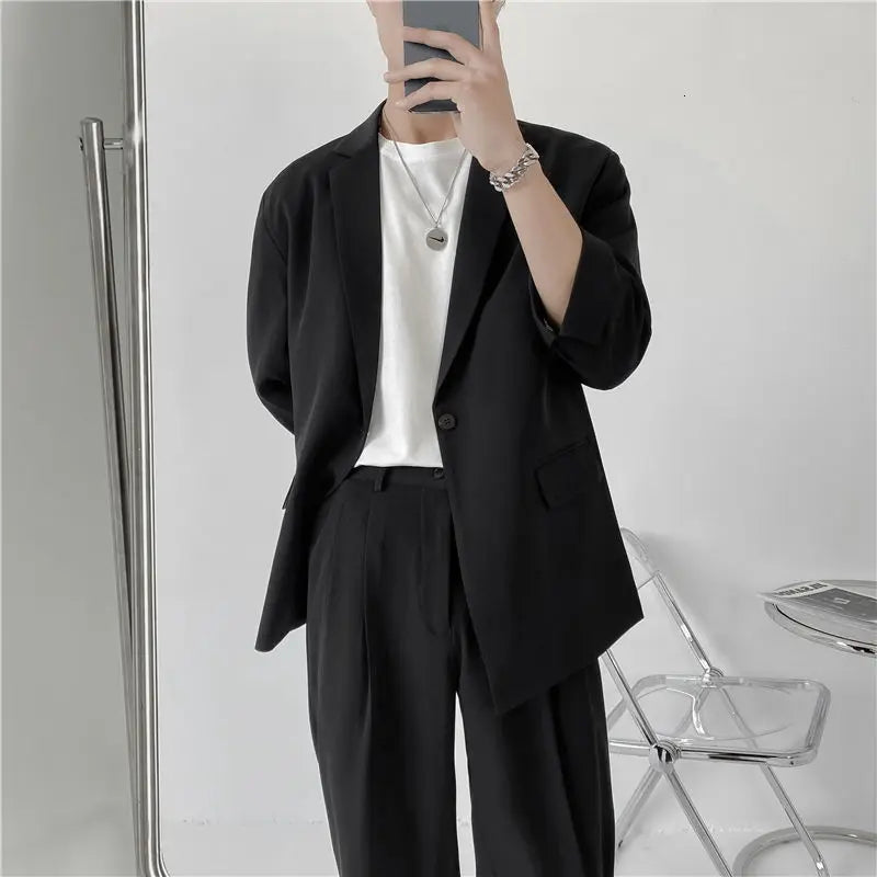 Spring Summer British Style Formal Blazer Men Korean Fashion Loose Casual Dress Jacket Men Harajuku Social Suit Jacket Men M-2XL