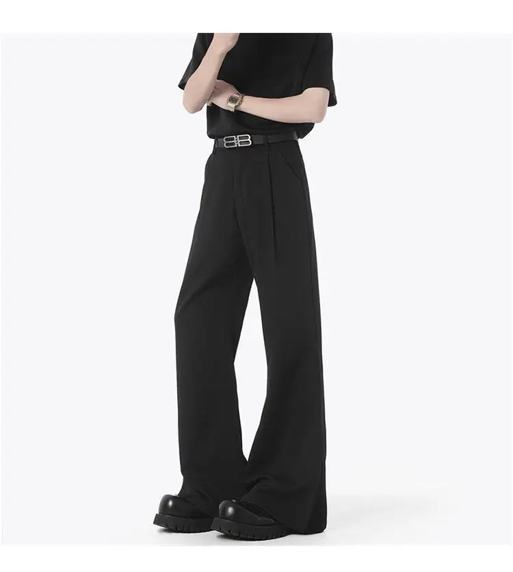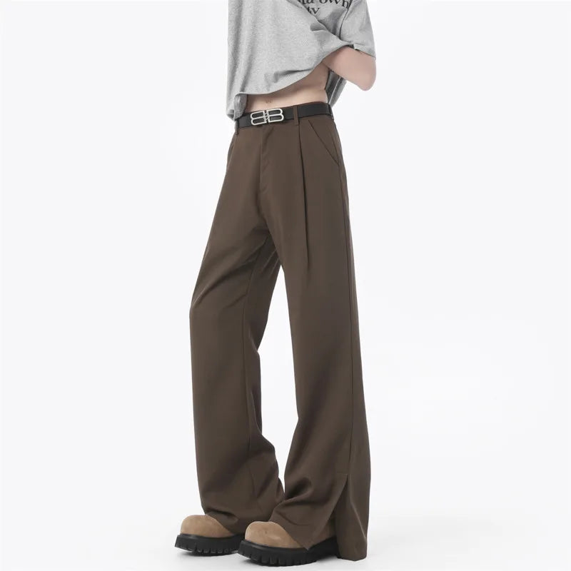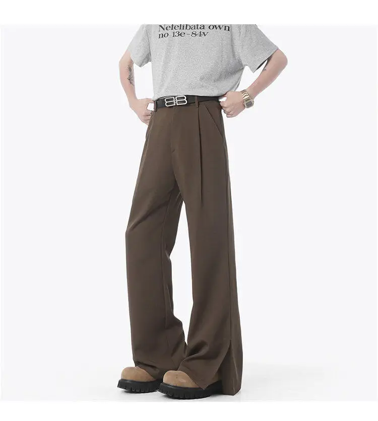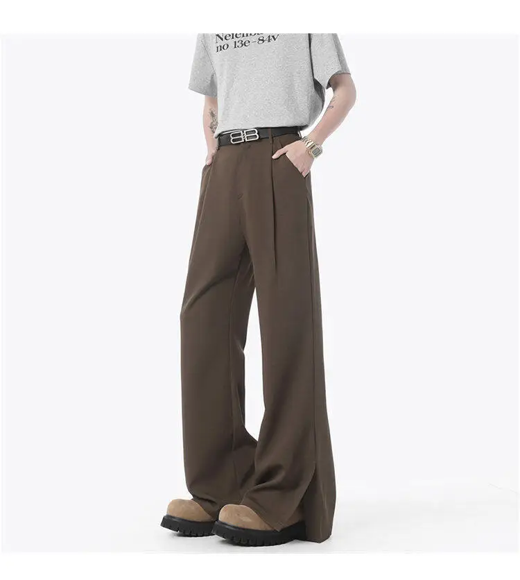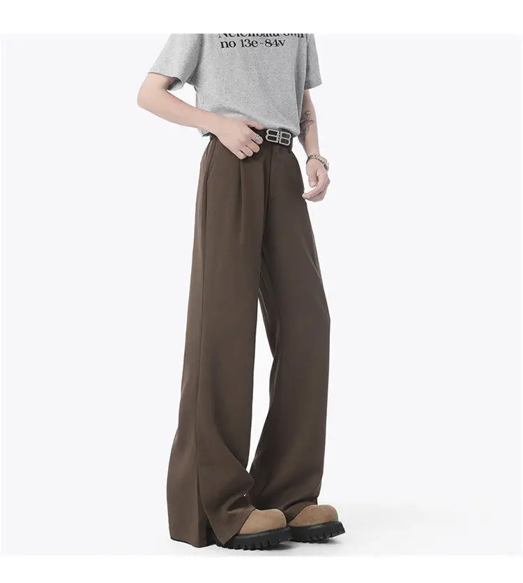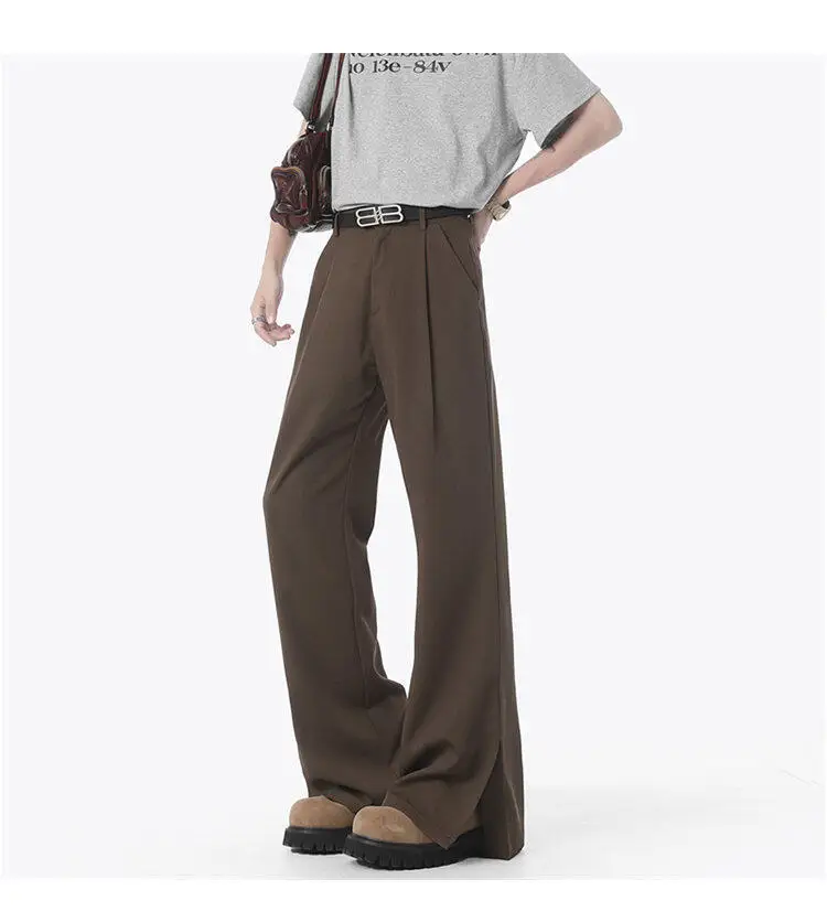 Summer Brown Suit Pants Men Fashion Society Mens Black Dress Pants Korean Loose Straight Pants Mens Office Formal Trousers