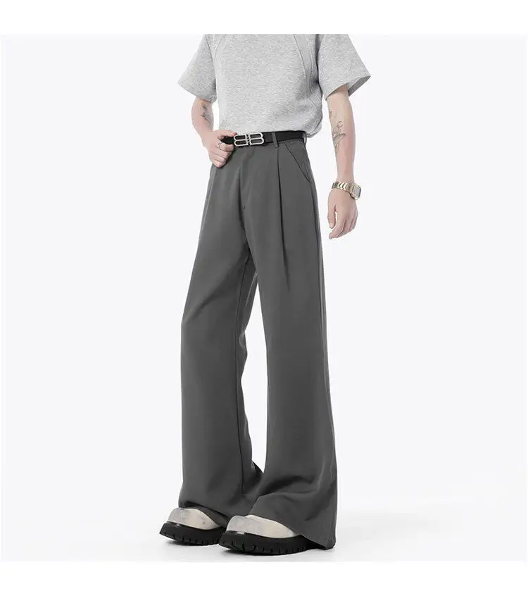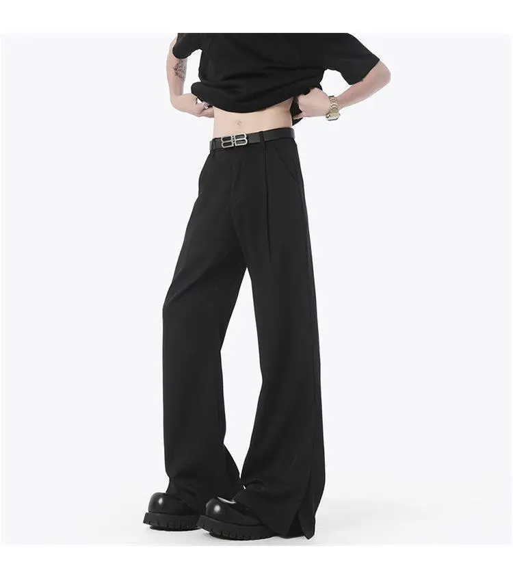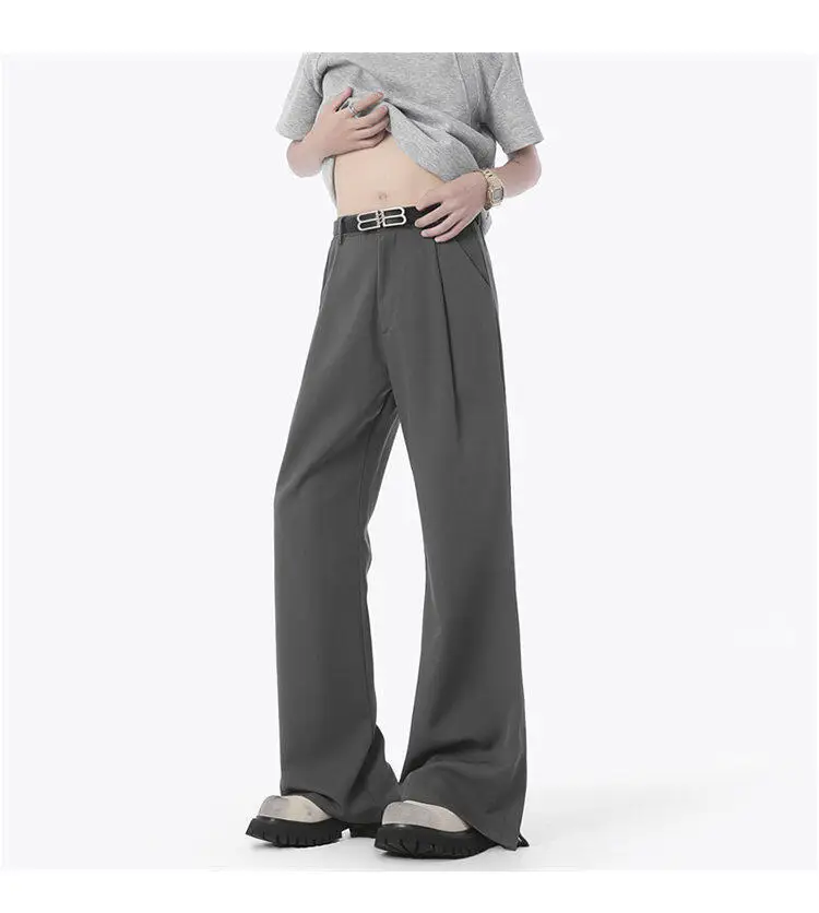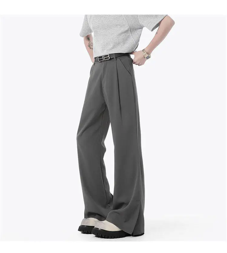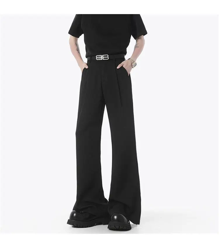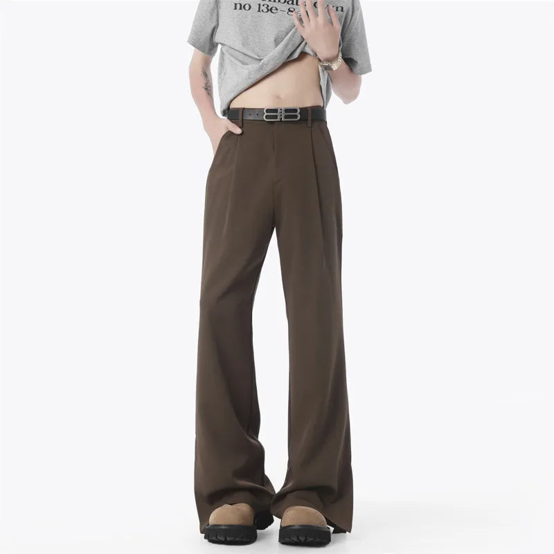 Summer Brown Suit Pants Men Fashion Society Mens Black Dress Pants Korean Loose Straight Pants Mens Office Formal Trousers