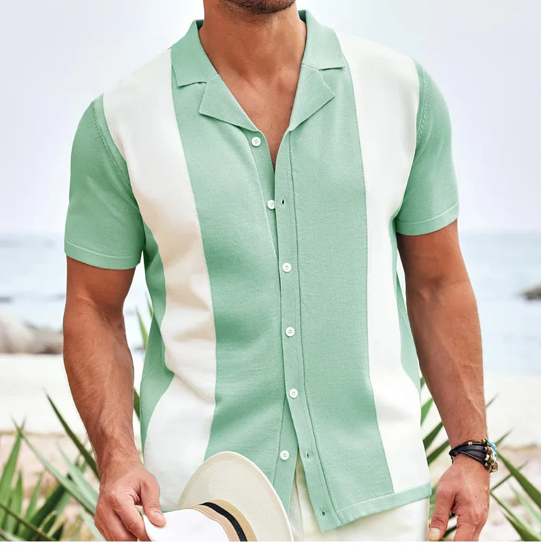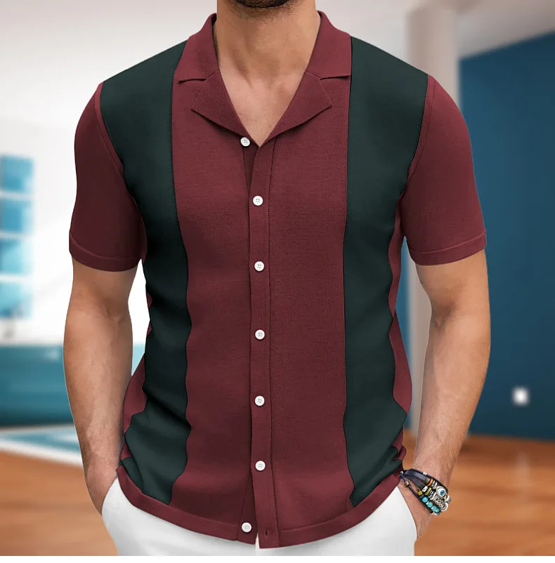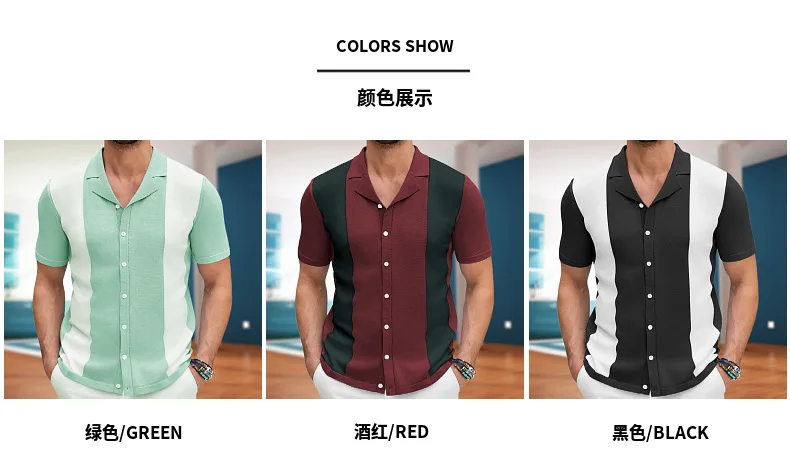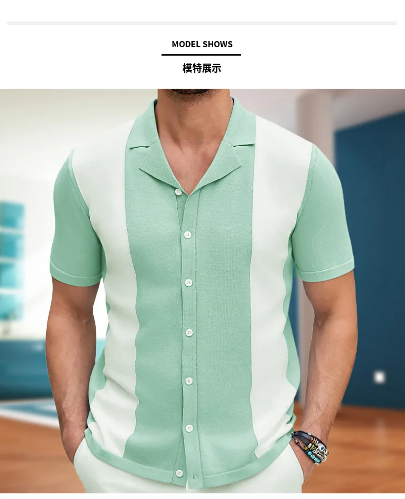 Summer Men's Clothing Luxury Suit Collar Knit Polo Shirt Leisure Patchwork Button-down Short Sleeve Fashion Popular Knitwear