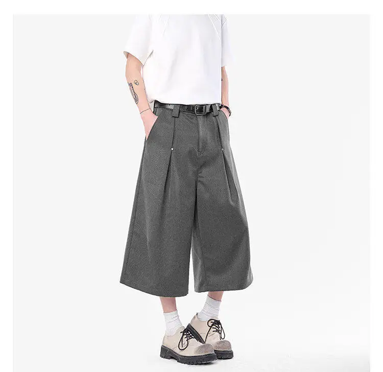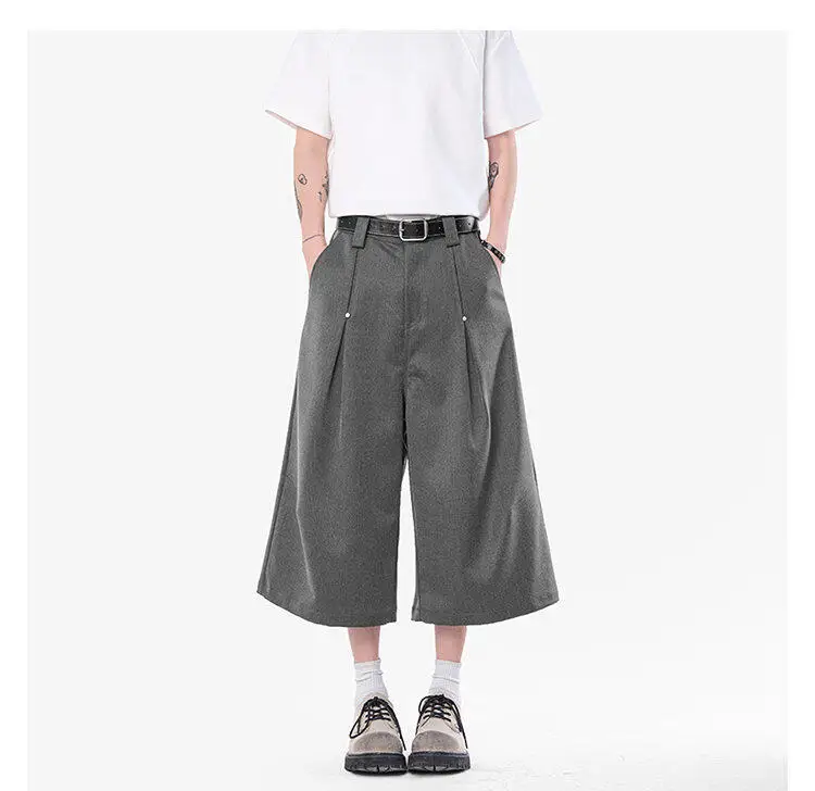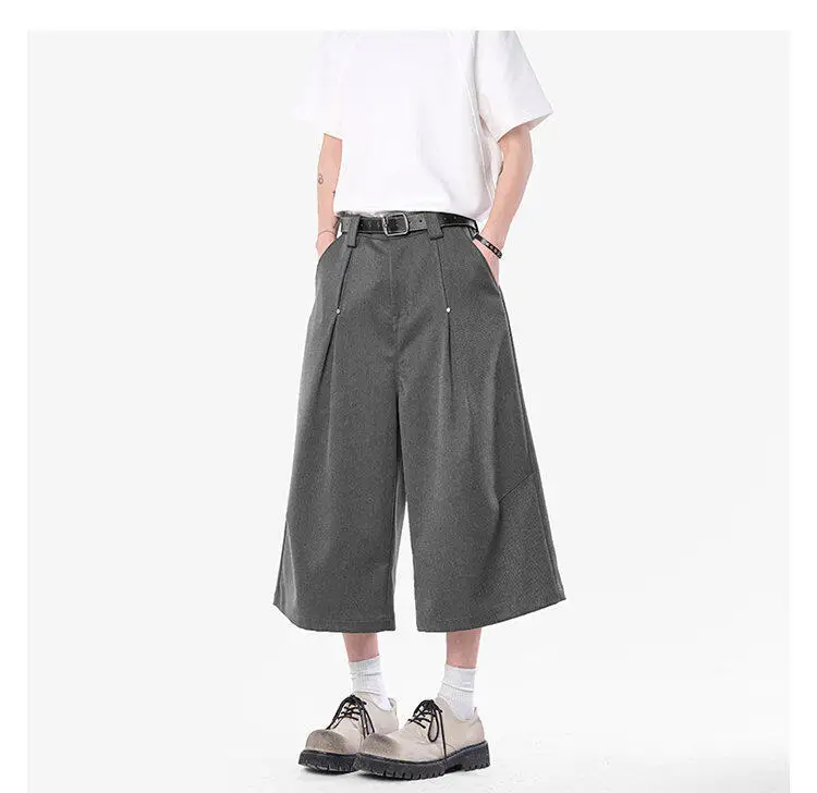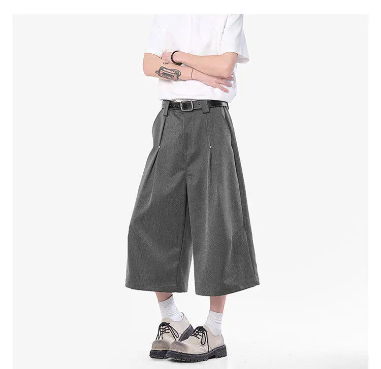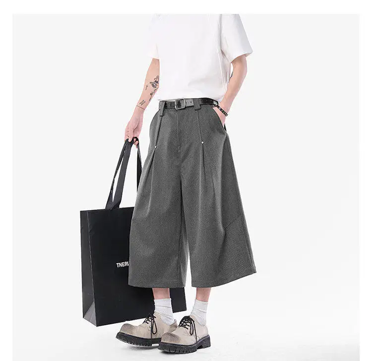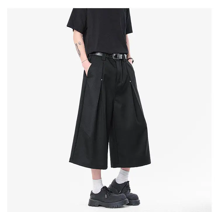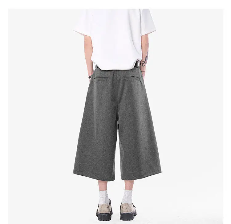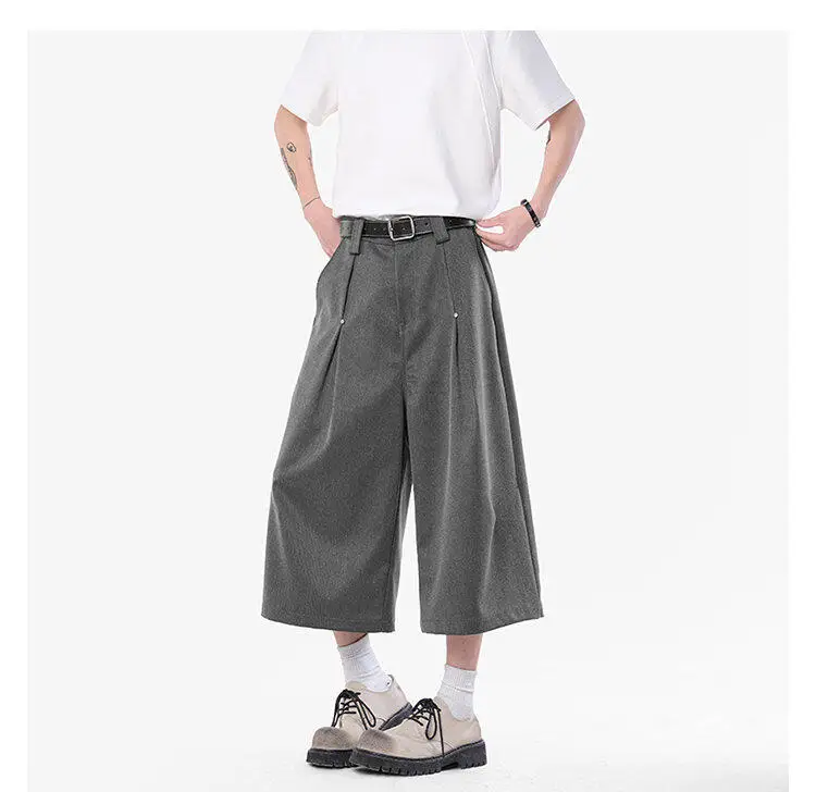 Summer Suit Pants Men Fashion Society Mens Black Dress Pants Korean Loose Wide Leg Pants Mens Office Formal Cropped Trousers