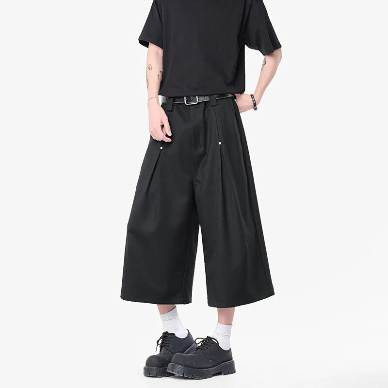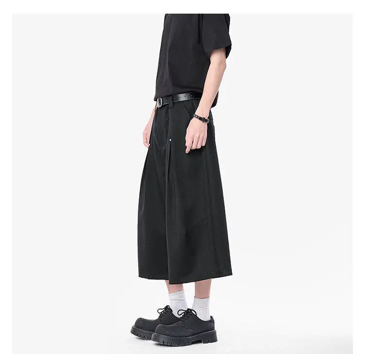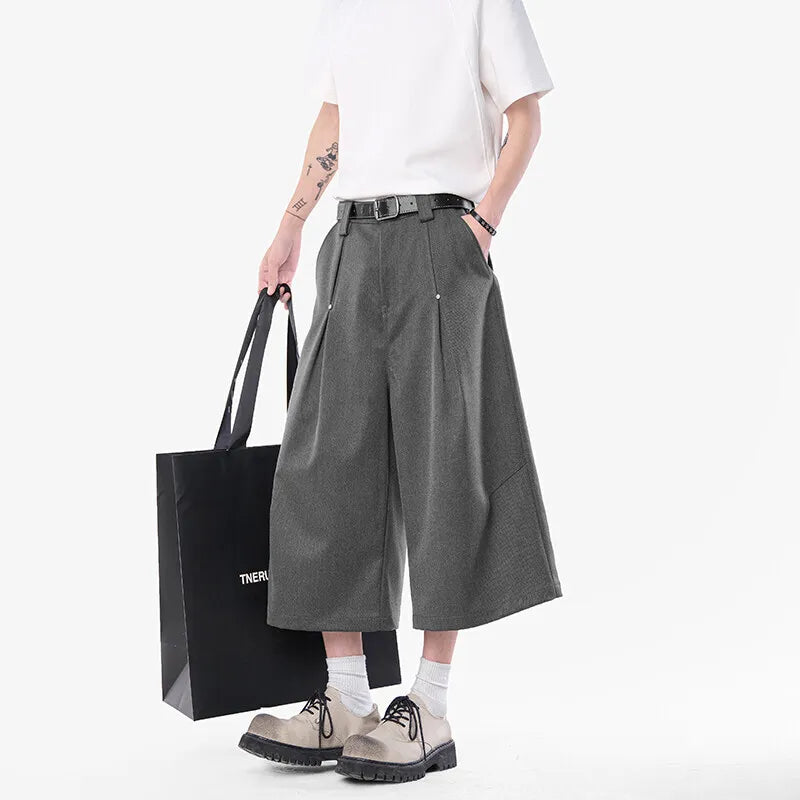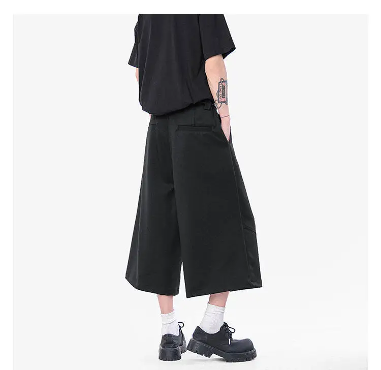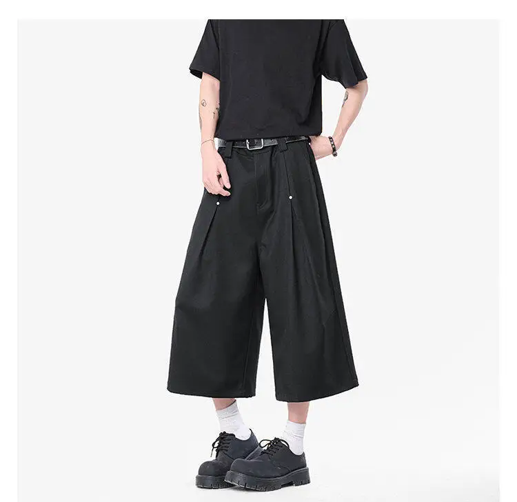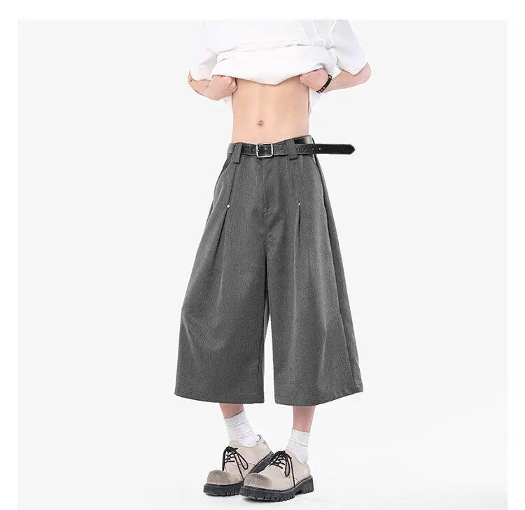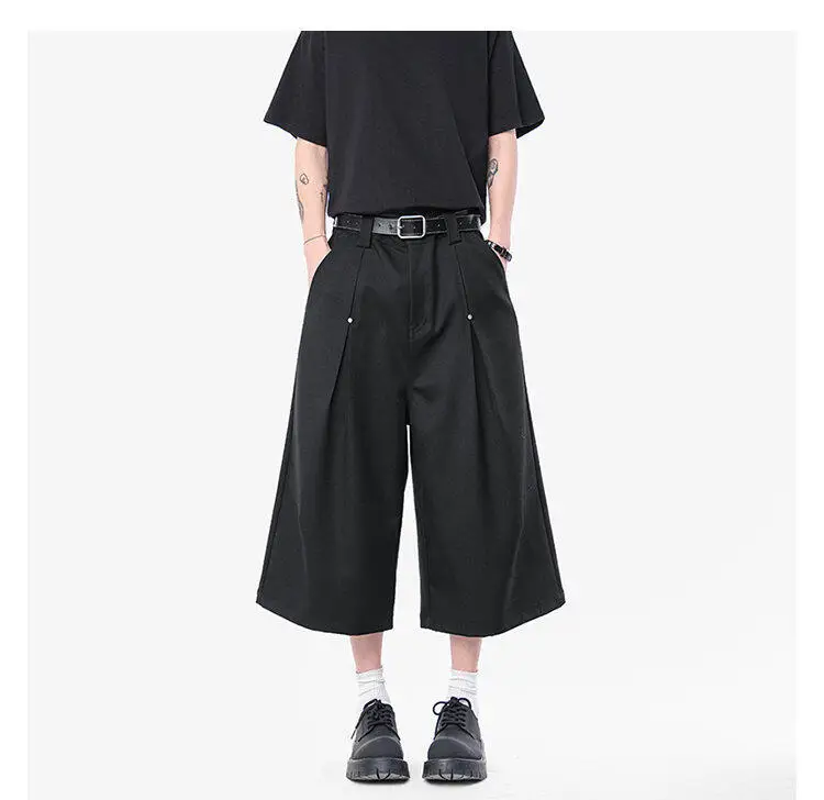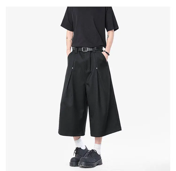 Summer Suit Pants Men Fashion Society Mens Black Dress Pants Korean Loose Wide Leg Pants Mens Office Formal Cropped Trousers