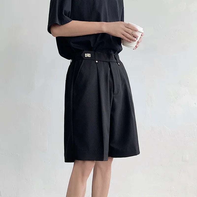 Summer Suit Shorts Men Fashion Social Mens Dress Shorts Korean Loose Black Ice Silk Shorts Mens Office Formal Shorts M-2XL