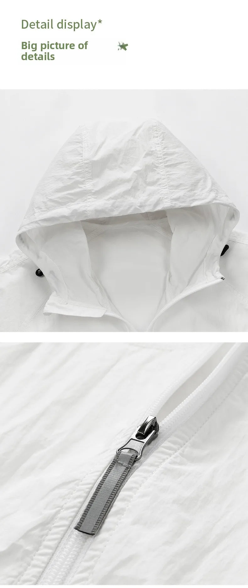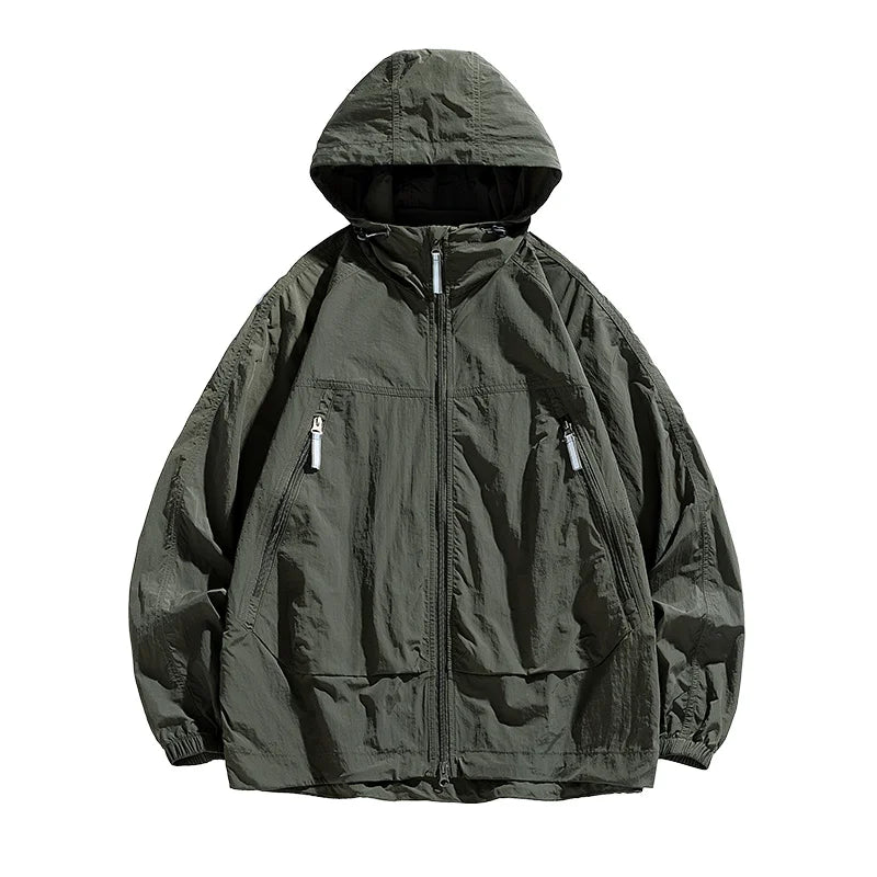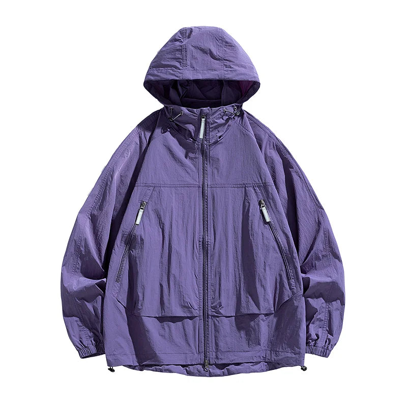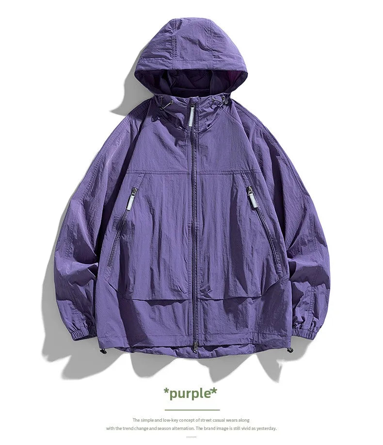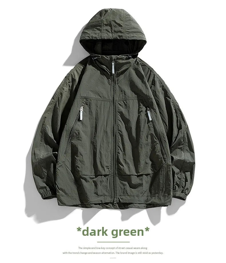 UPF50+Men's Hooded Windbreaker Sunscreen Jacket - Ultra Light Summer Zipper Pocket Elastic Cuffs Suitable for Outdoor Hiking