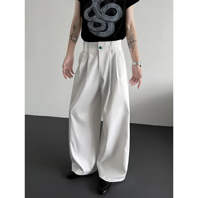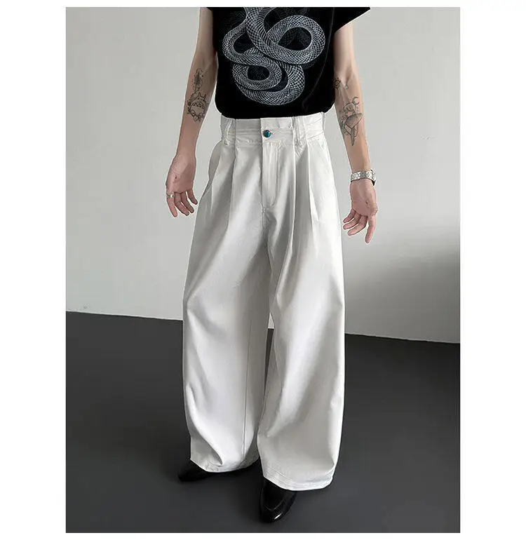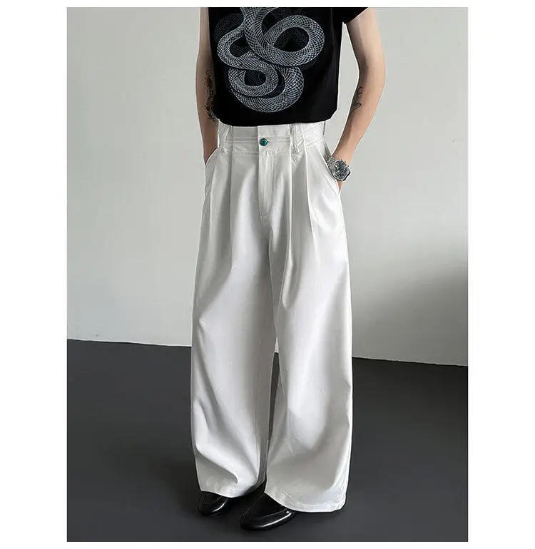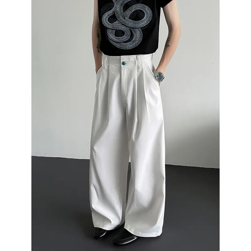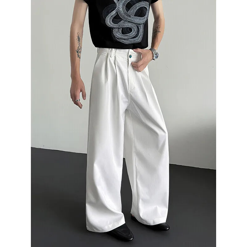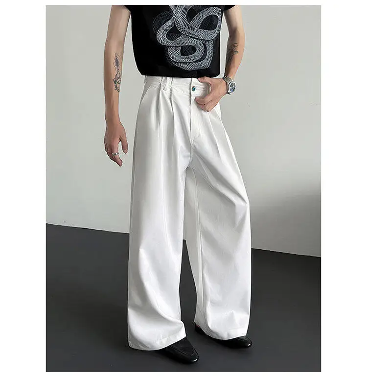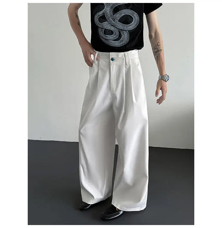 White Suit Pants Men Oversized Fashion Society Mens Black Dress Pants Korean Loose Wide Leg Pants Mens Office Formal Trousers