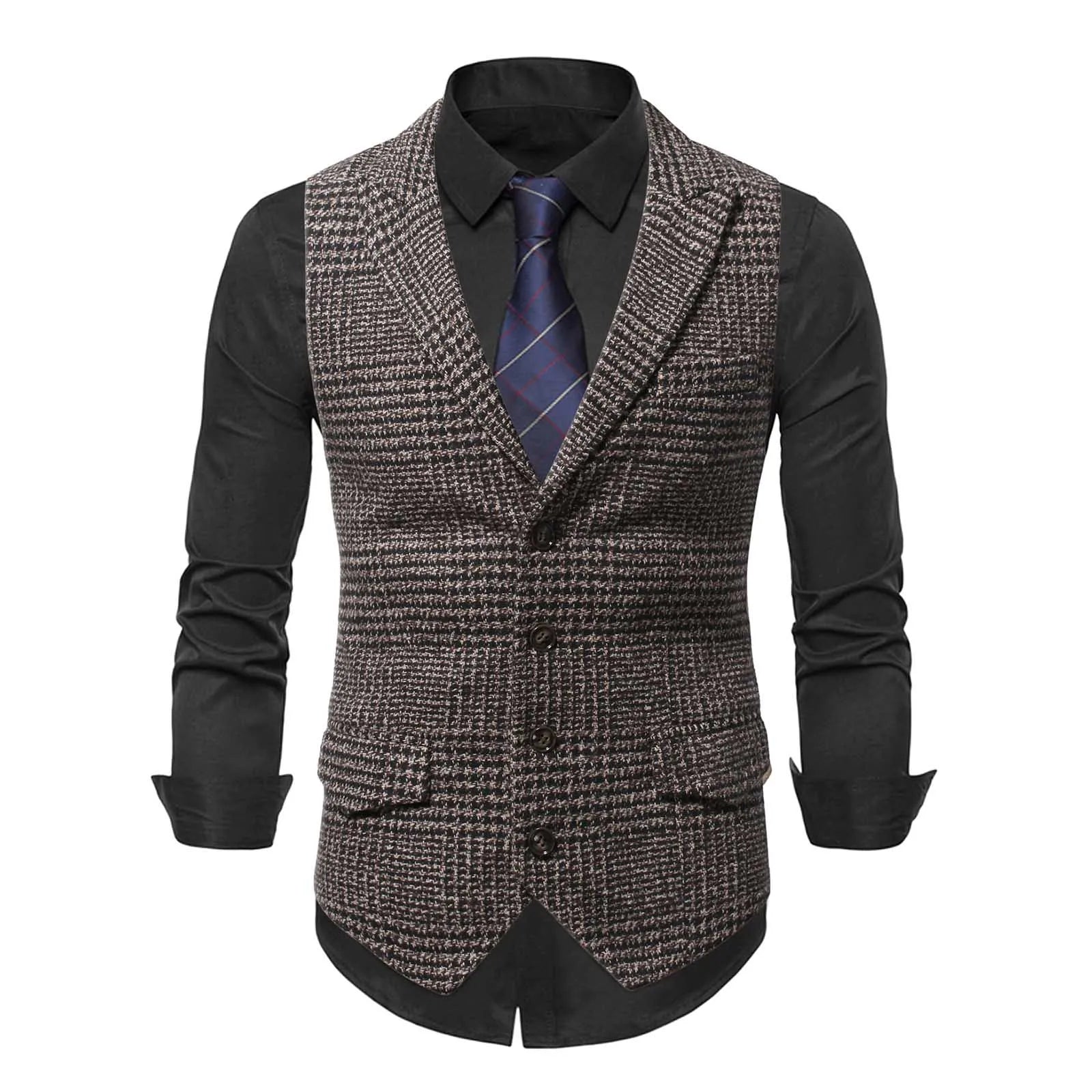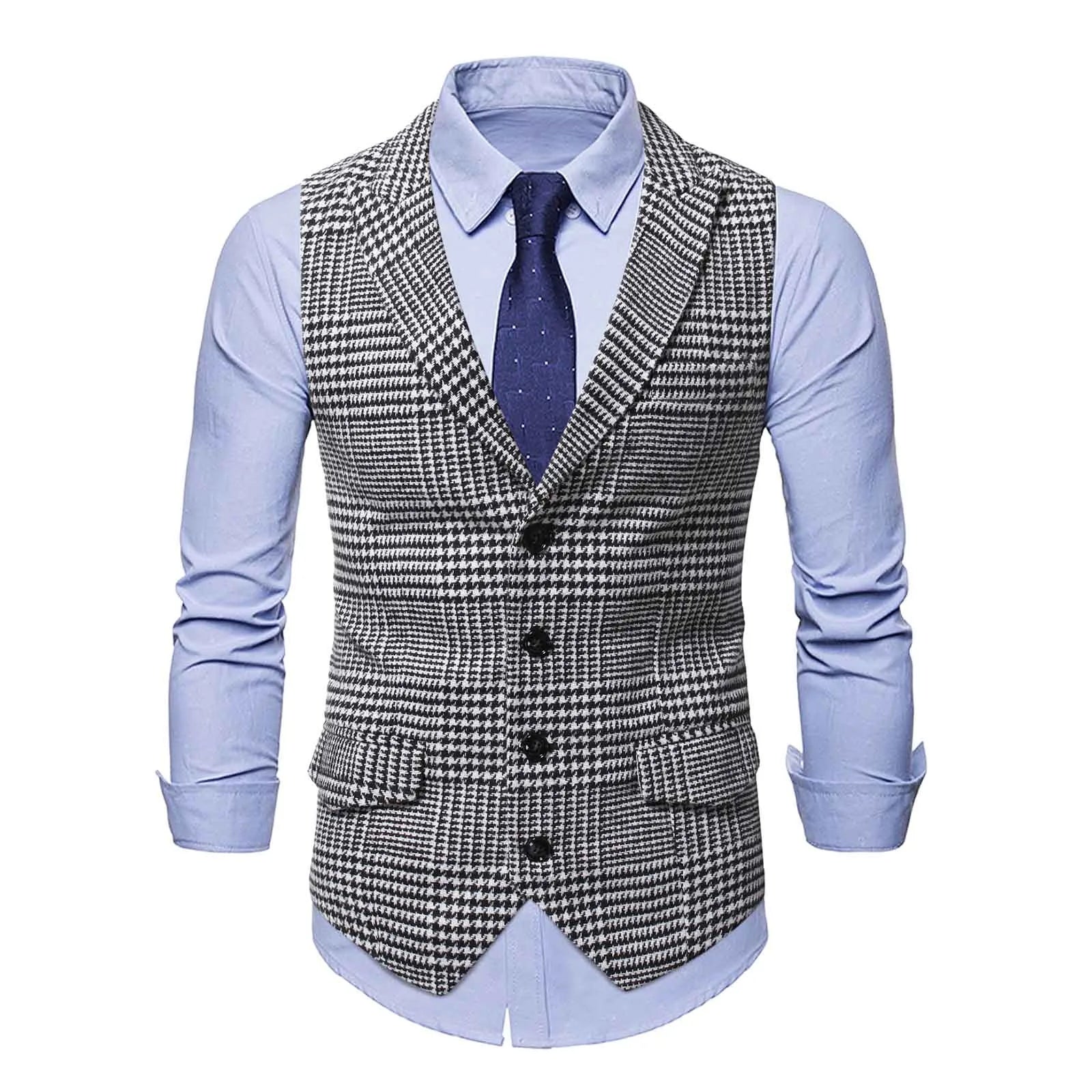 Mens Suit Vest Fashion Slim Fit Thin Plaid Men Waistcoat Tops Business Vest Waistcoat Man England Style Male Casual Suits Vests