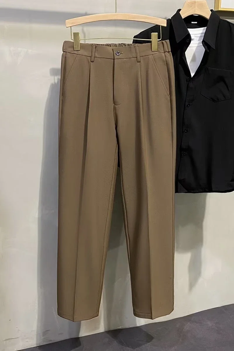 Plus Big Size Draped Trousers for Men Brown Man Suits Pants Fluid Korean Style Clothes Anti-wrinkle Chinese Homme Spring Fabric
