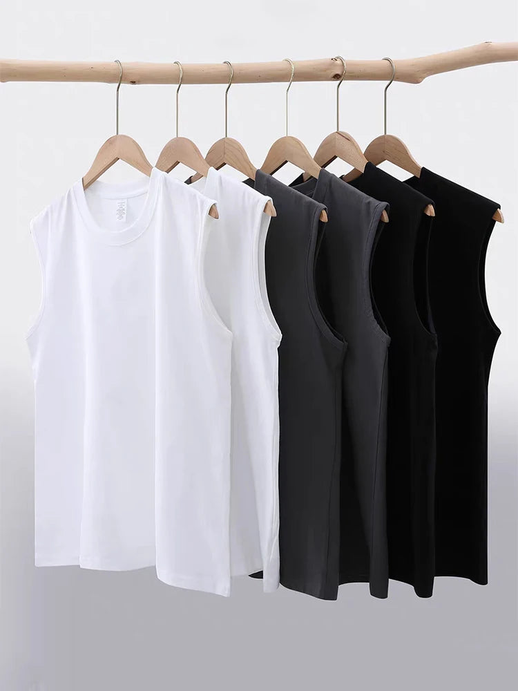 230GSM Cotton Men's Tank Tops Comfortable Muscle Fit Athletic Vest for Gym and Summer Workouts Korean Basic Sleeveless Tee Tops