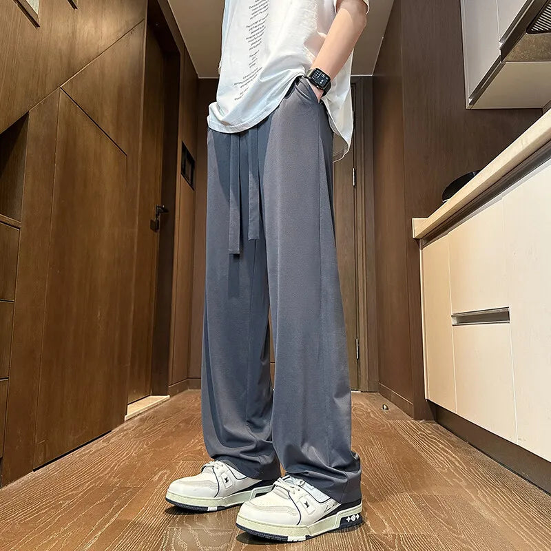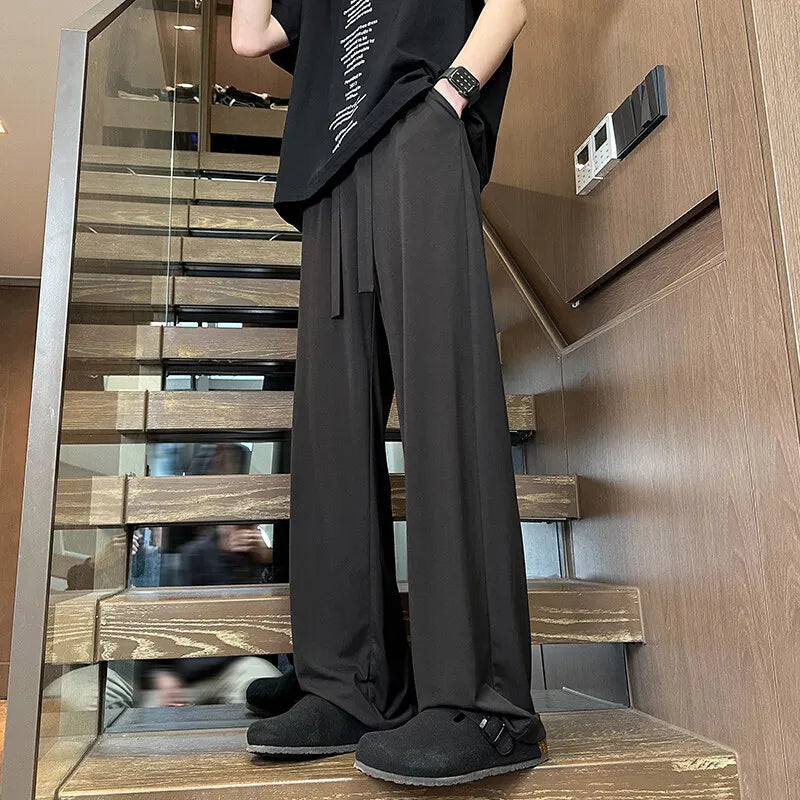 Men's Wide Leg Pants Thin Man Comfortable Pant Black Summer Casual Streetwear Fashion Drawstring Trouser Japanese 5XL Trendy