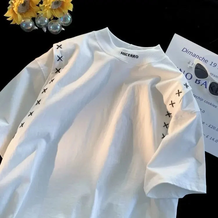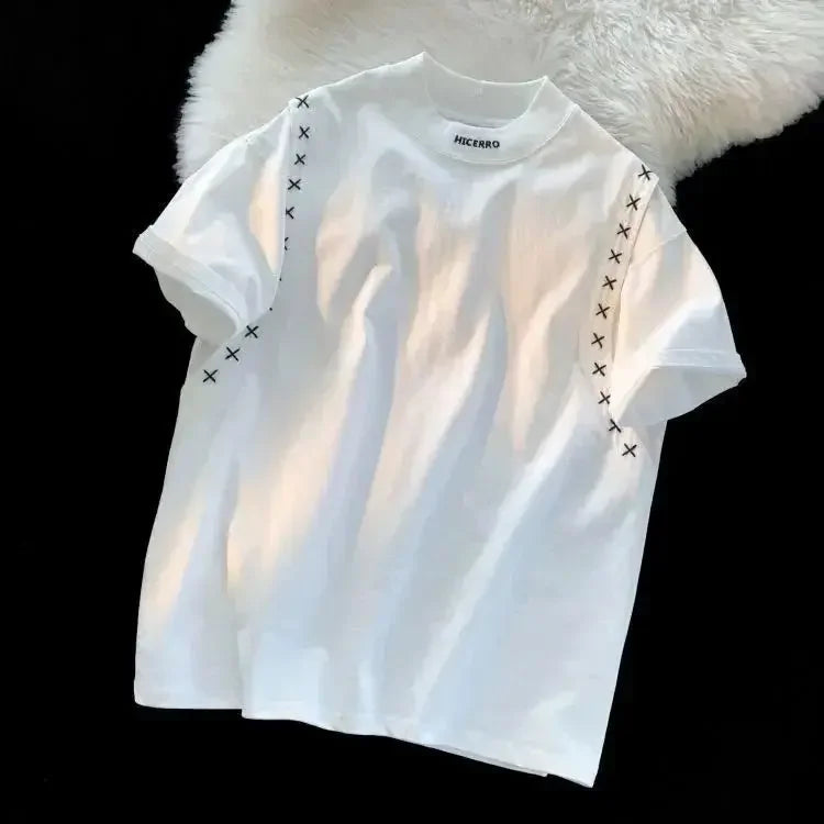 Korean Style Streetwear Design Sense Splicing T-shirt for Men and Women Summer Oversize Fashion Handsome Couple Style