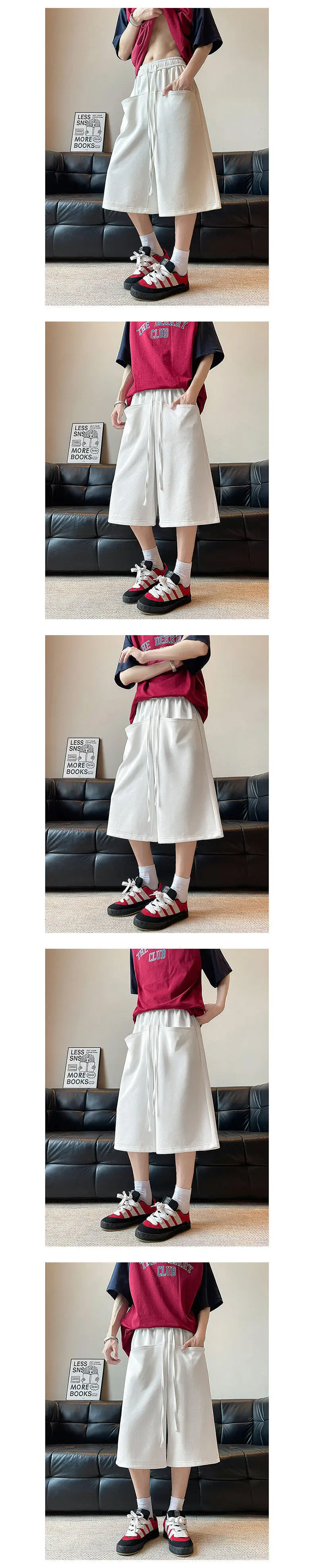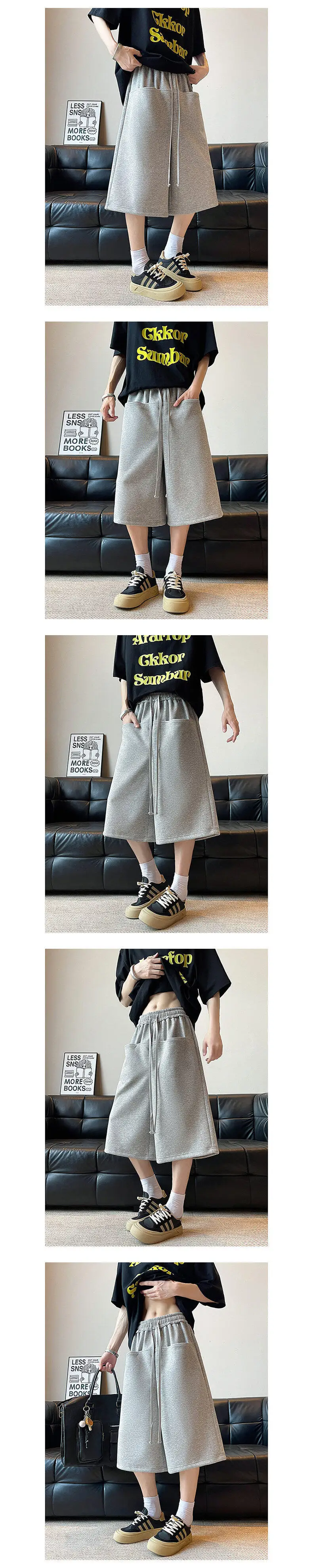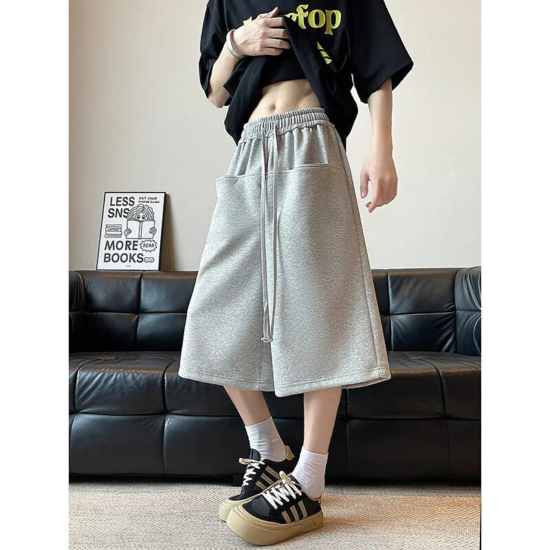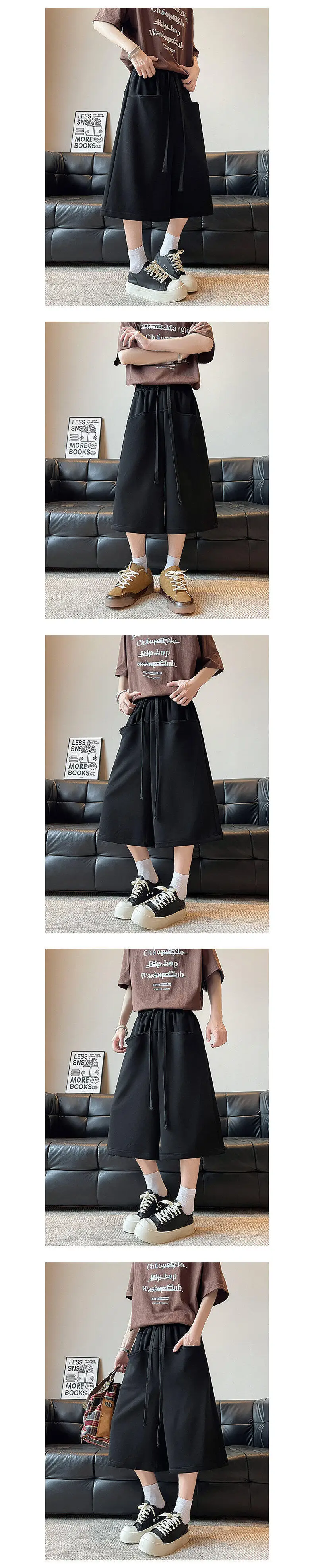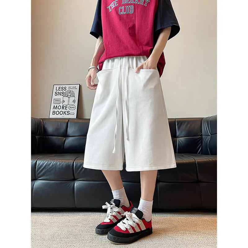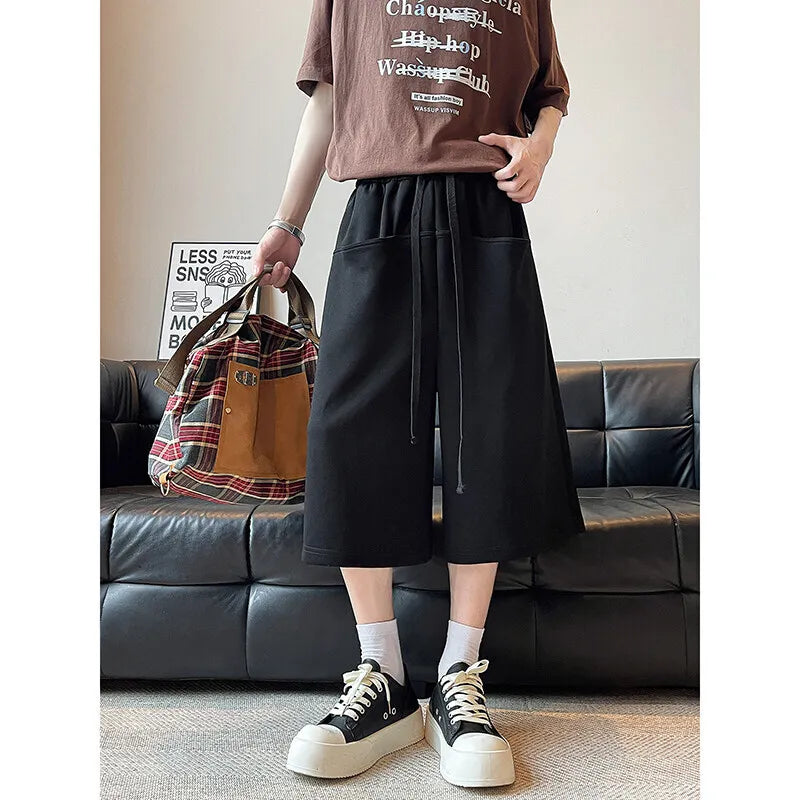 Summer Casual Pants Men Oversized Fashion White Wide Leg Pants Men Streetwear Korean Loose Cropped Trousers Mens Black Pants