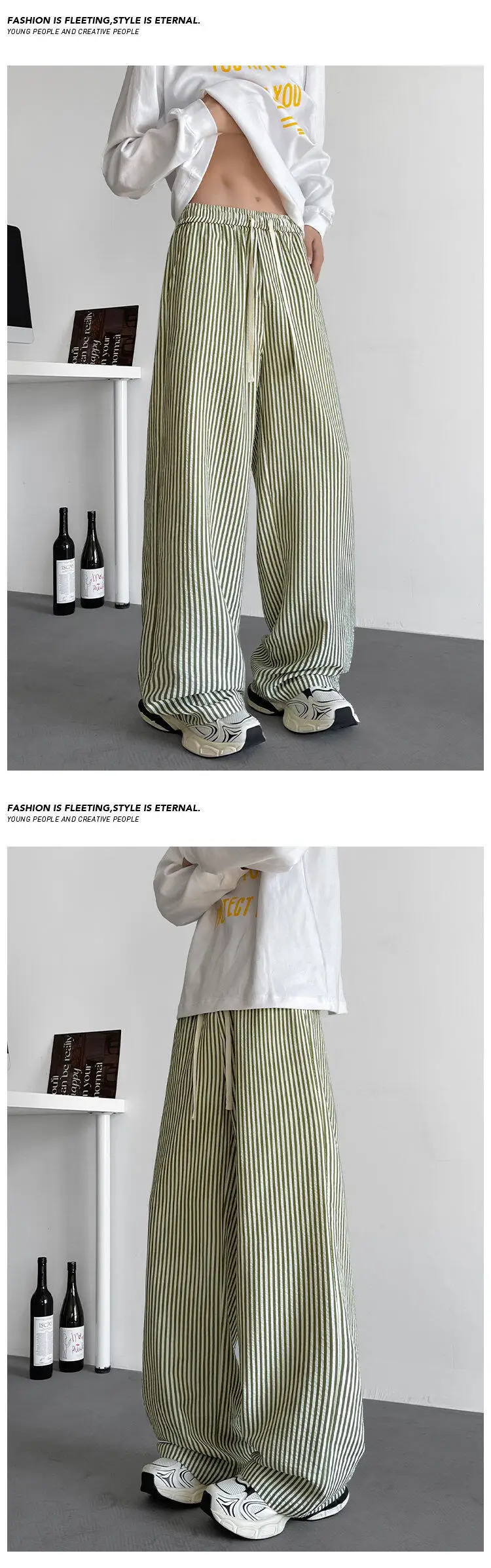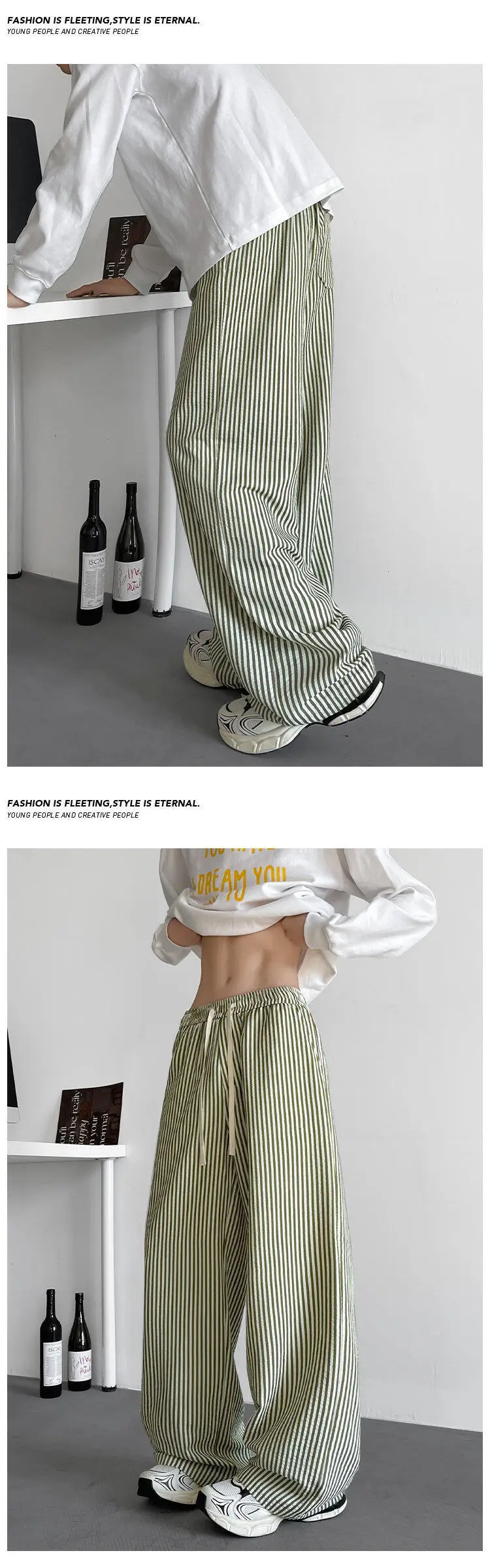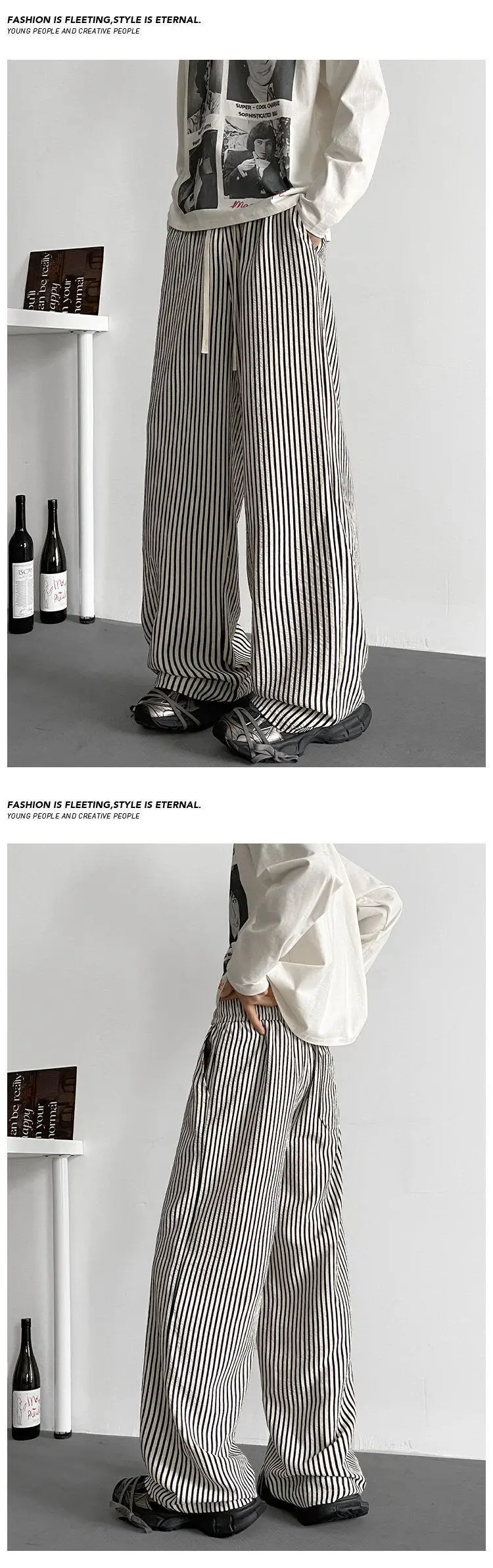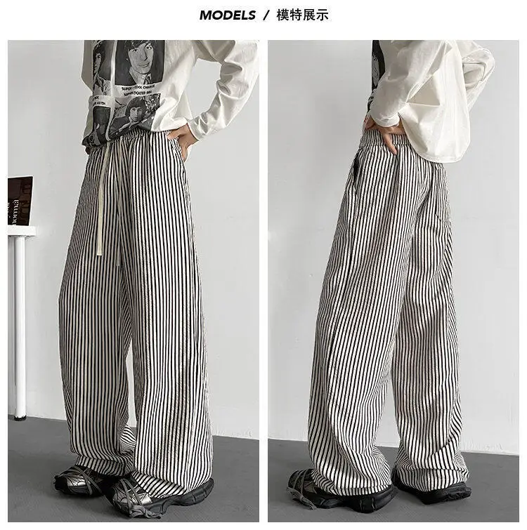 Summer Casual Pants Men Oversized Retro Striped Pants Men Streetwear Korean Loose Wide Leg Pants Mens Trousers Plus Size 5XL