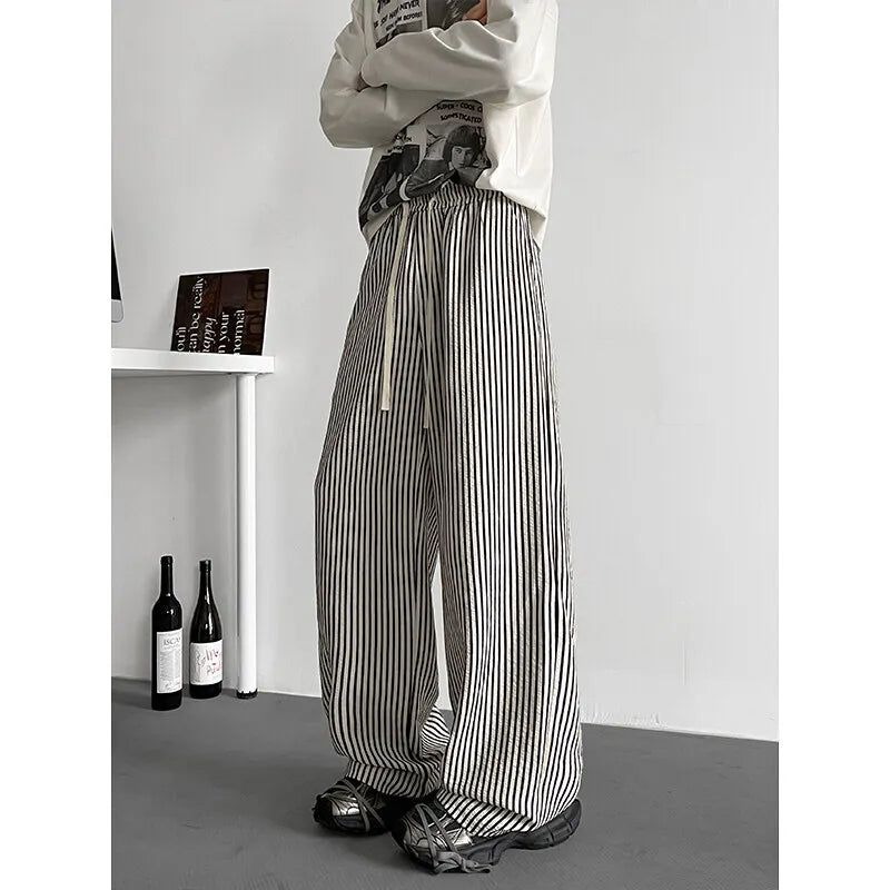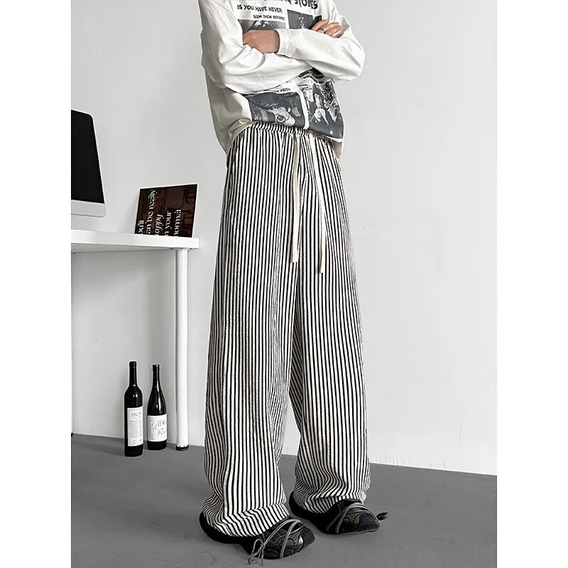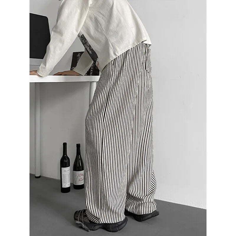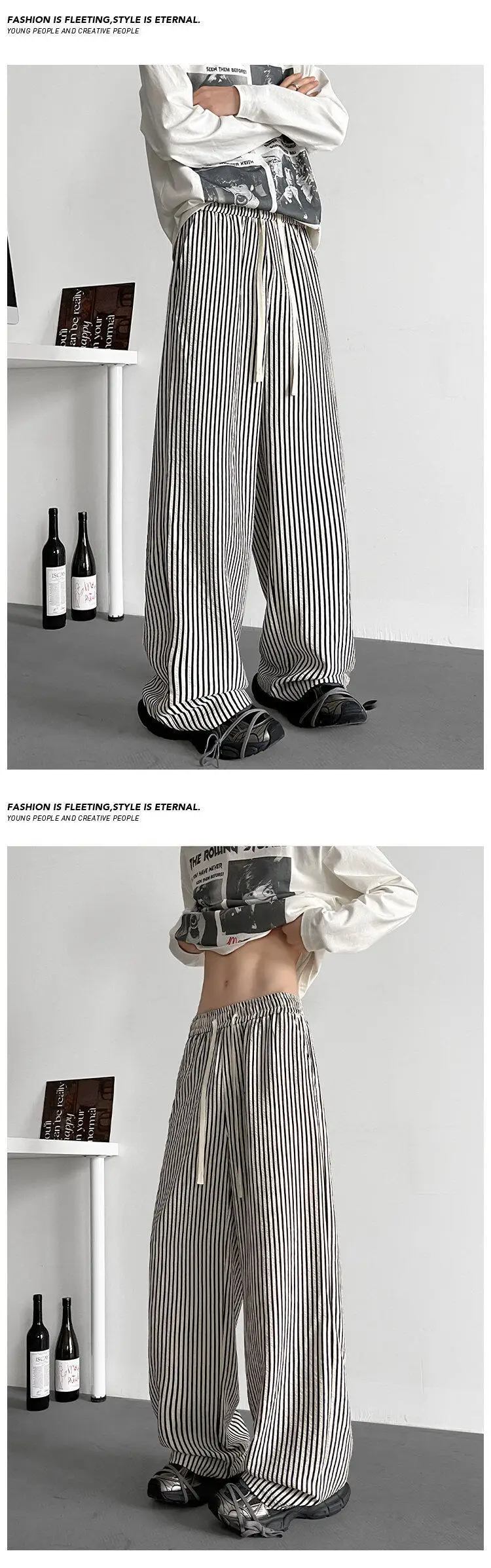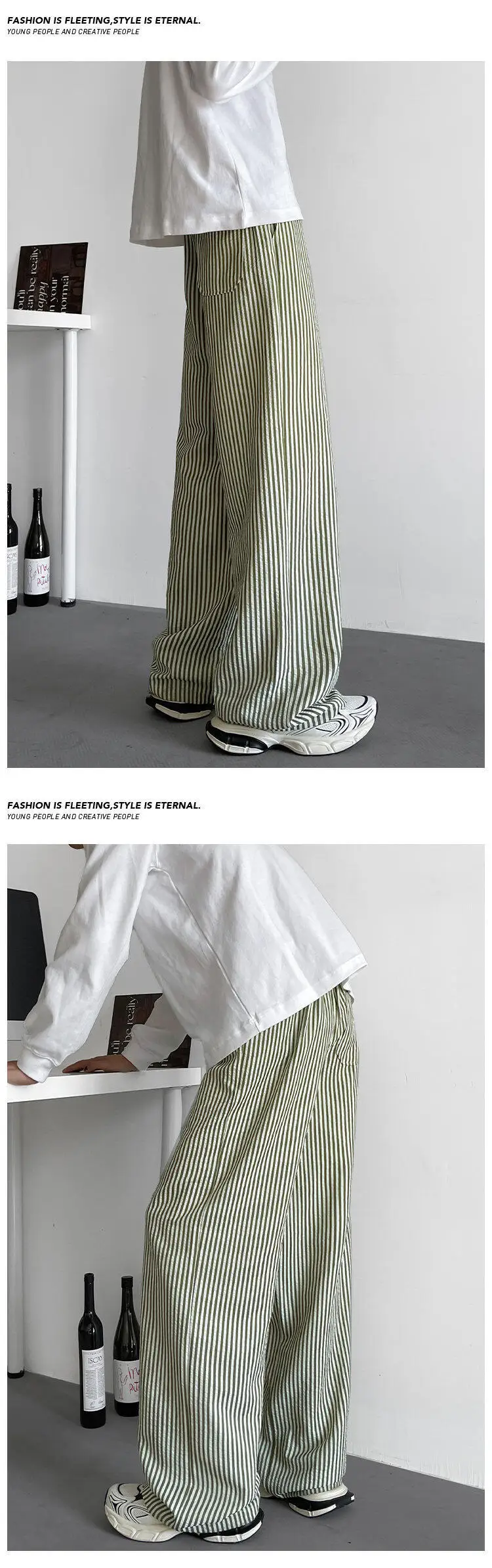 Summer Casual Pants Men Oversized Retro Striped Pants Men Streetwear Korean Loose Wide Leg Pants Mens Trousers Plus Size 5XL