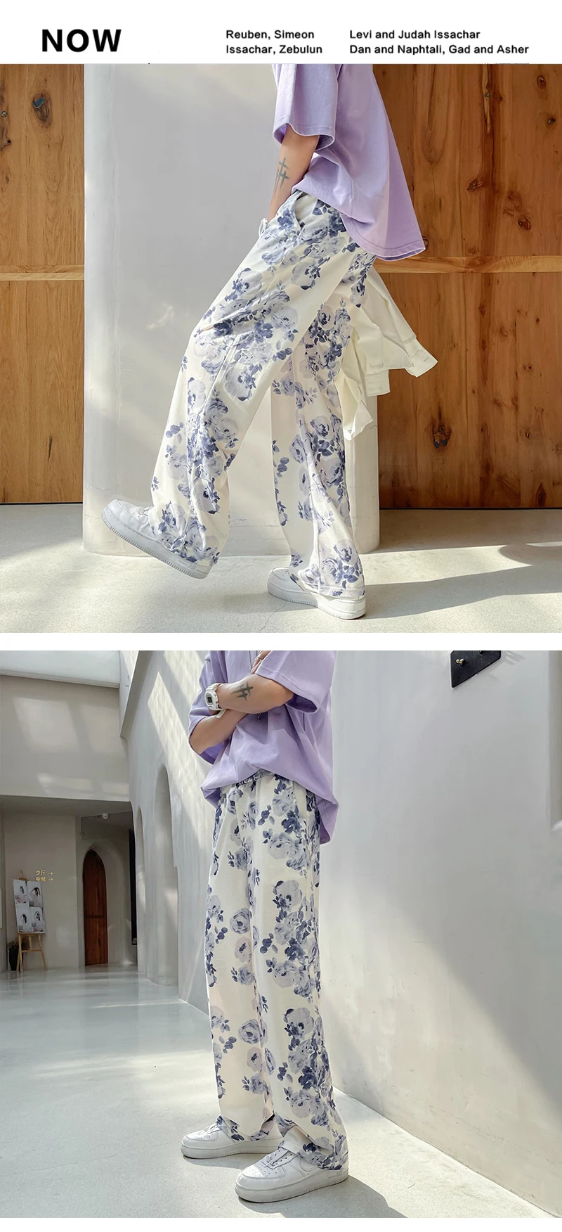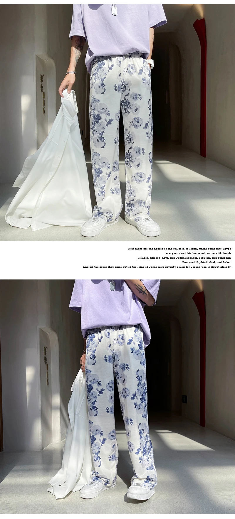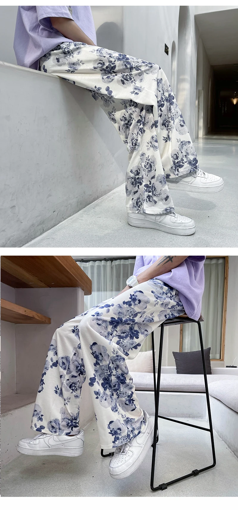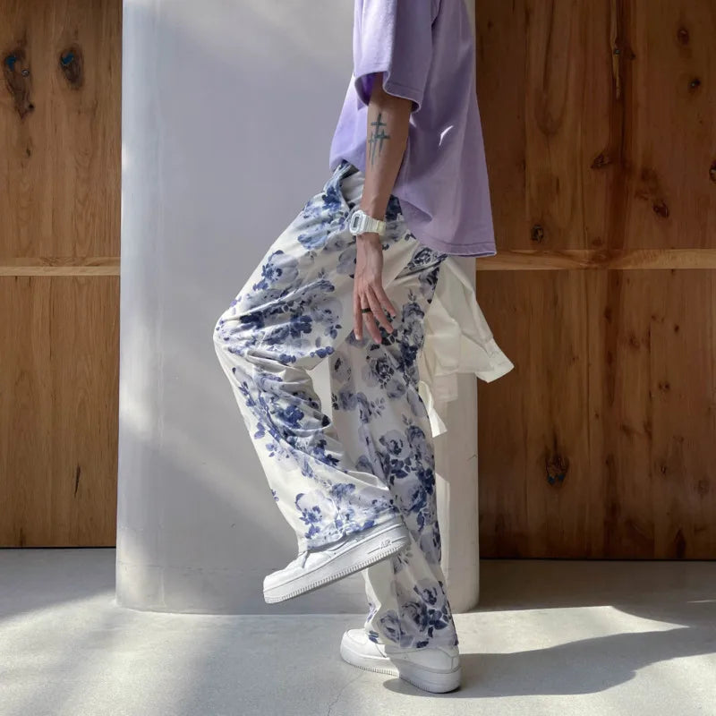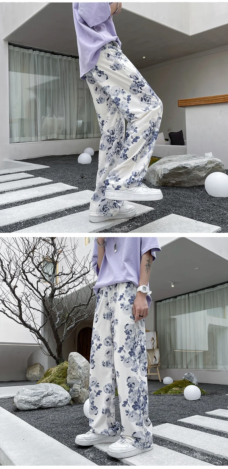 Summer Flower Pants Men Oversized Printed Wide Leg Pants Men Streetwear Korean Loose Straight Casual Pants Mens Trousers M-3XL