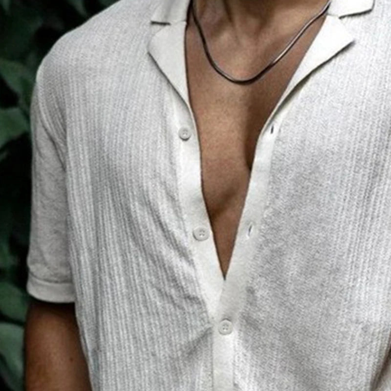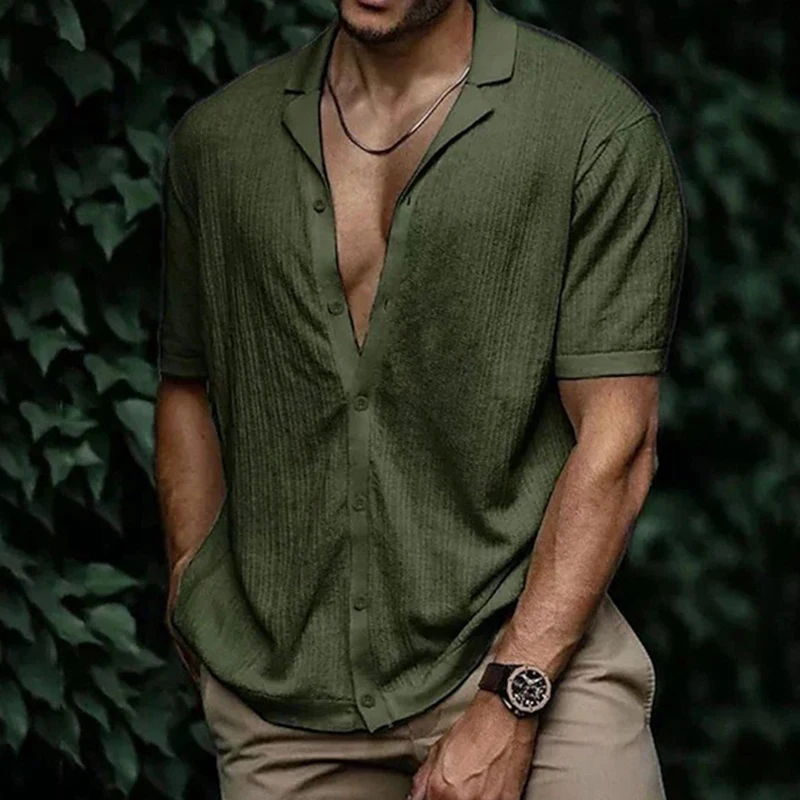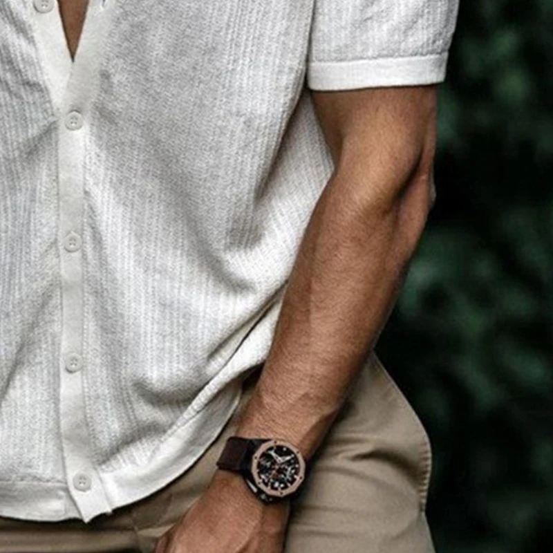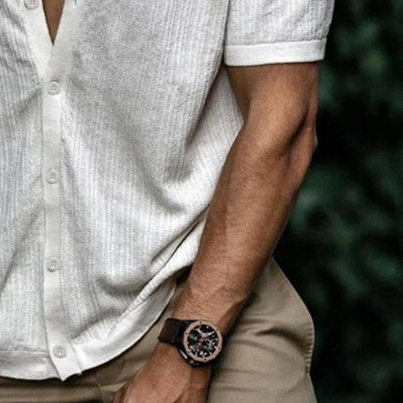 Summer Men's Clothing Luxury Knitted Short Sleeve Polo Shirt Casual Solid Color Lapel Button-down Fashion Leisure Knitwear
