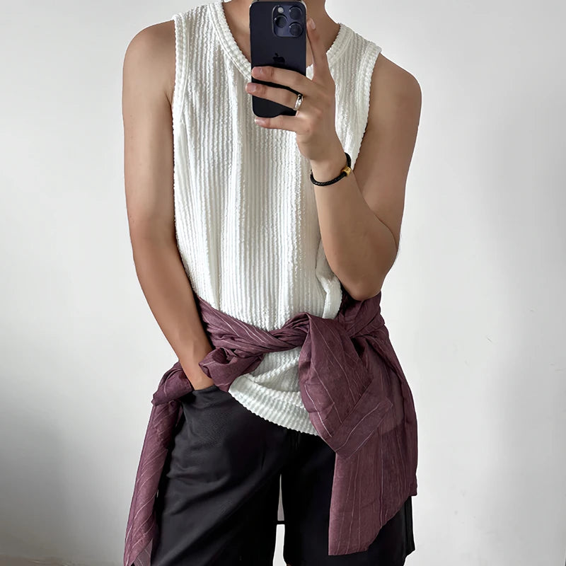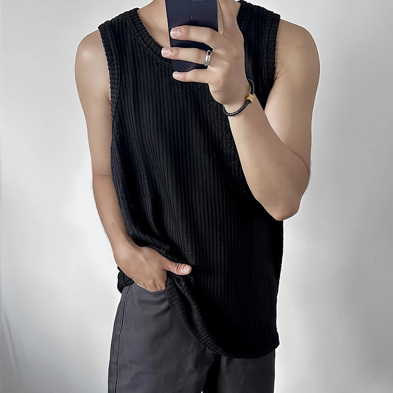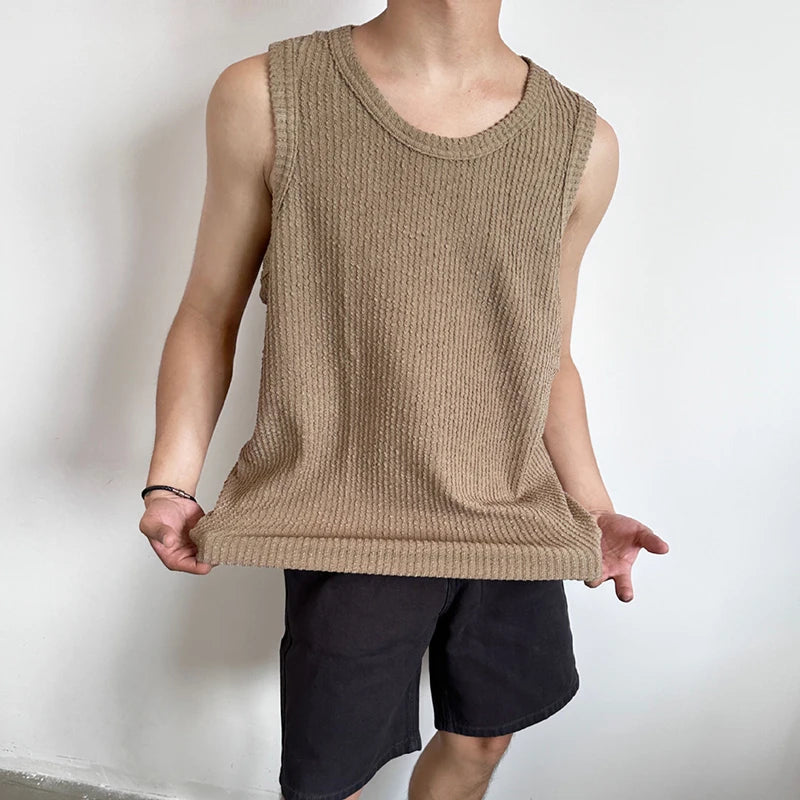 Summer Men's Leisure Knit Tank Tops Casual Sleeveless Streetwear Sexy Solid Color Breathable Fashion Retro Loose Inner Clothes