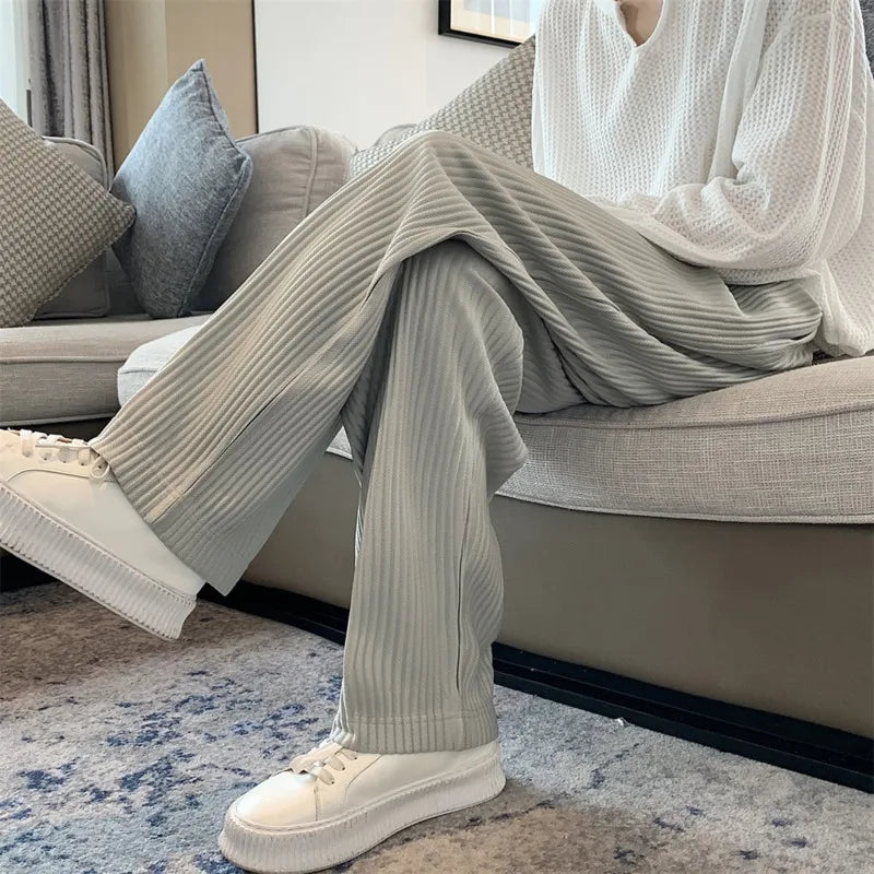 Summer Pleated Pants Men Fashion Oversized Ice Silk Pants Men Japanese Streetwear Loose Straight Pants Mens Casual Trousers