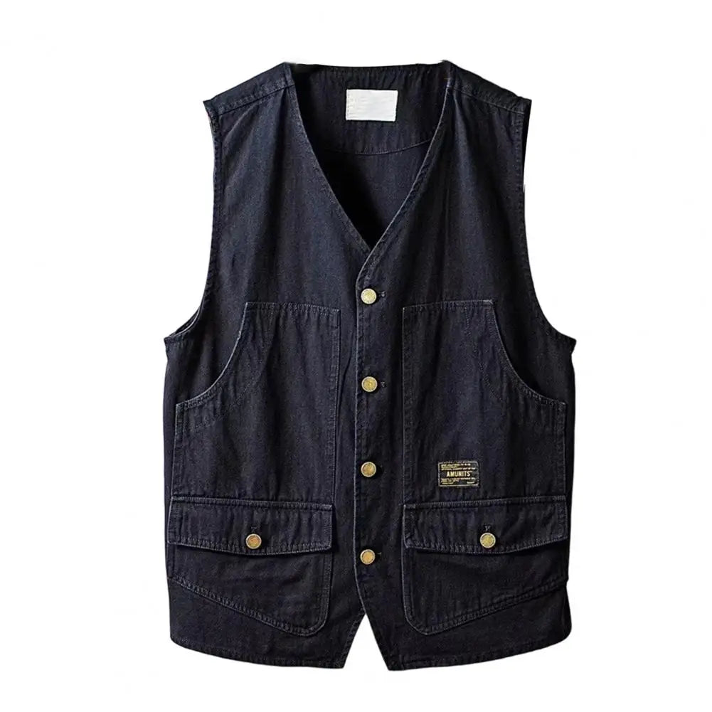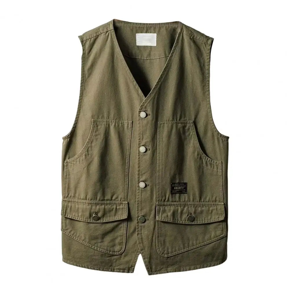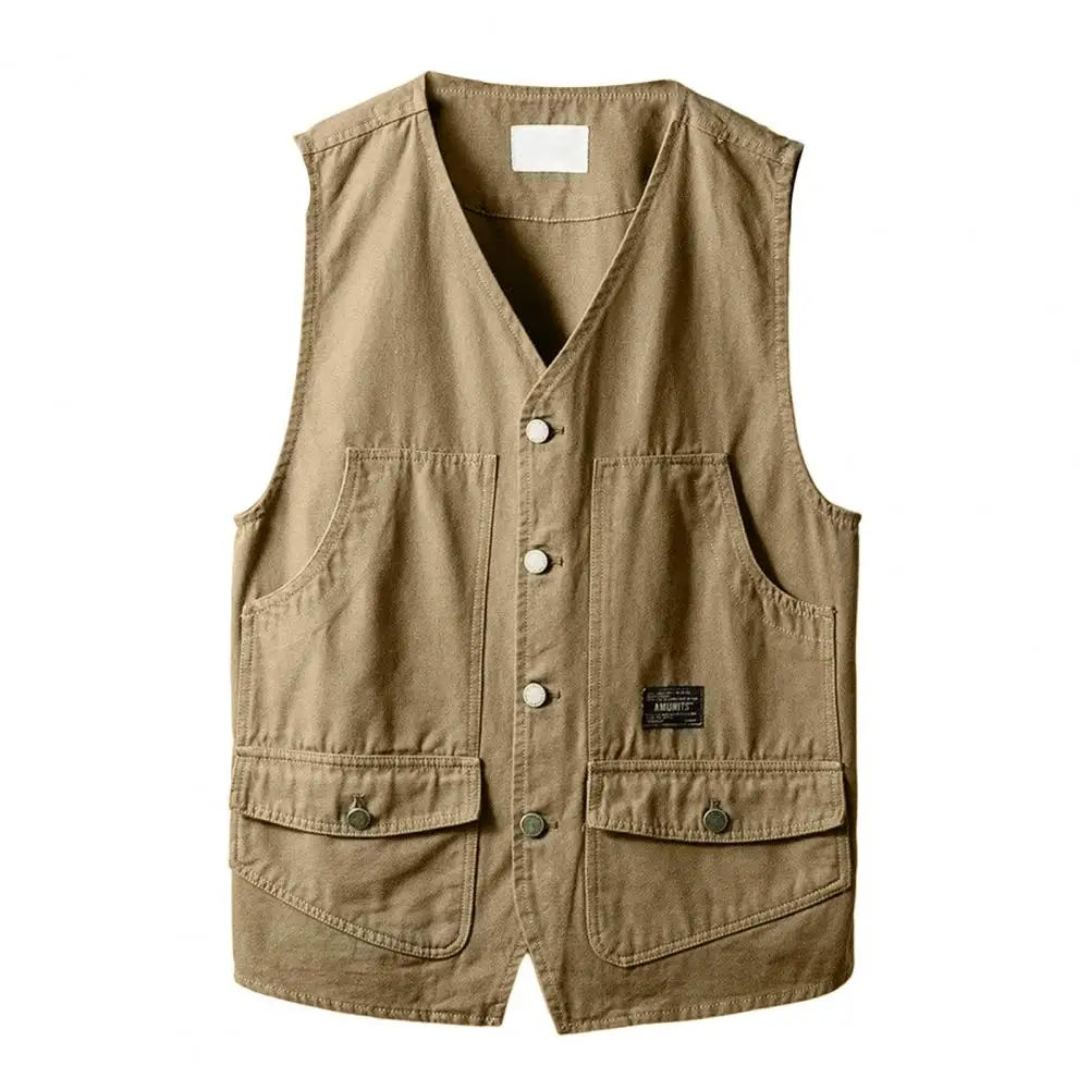 Summer Retro Loose and Thin Japanese Multi Pocket Workwear Sleeveless Vest Men