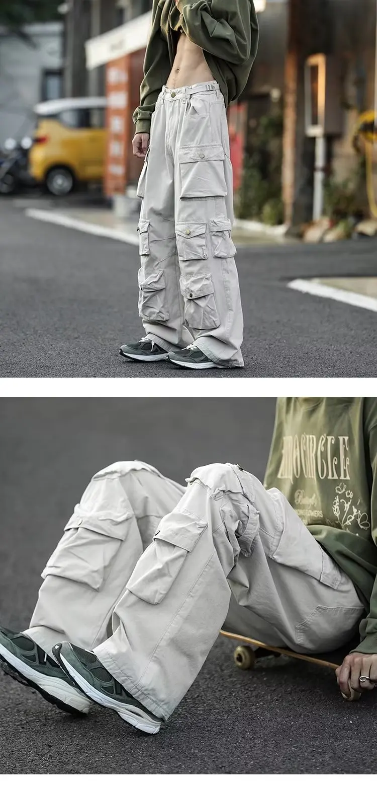Cargo Pants Street Popular White Multi-pocket Overalls Men's Harajuku Loose Casual Trousers Straight Mopping Pants Sweatpants