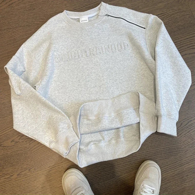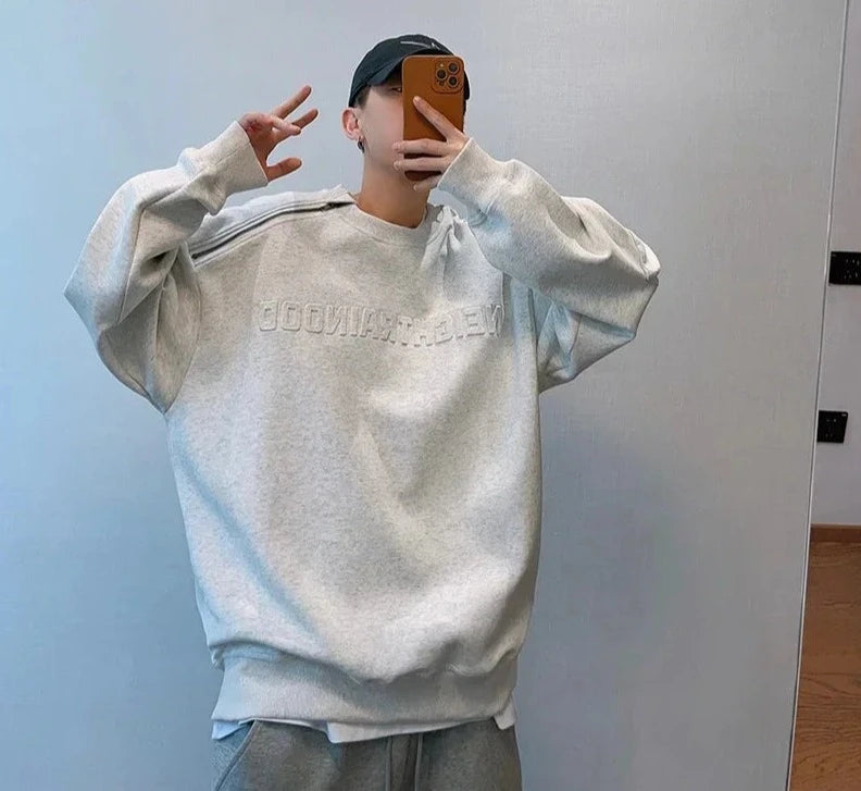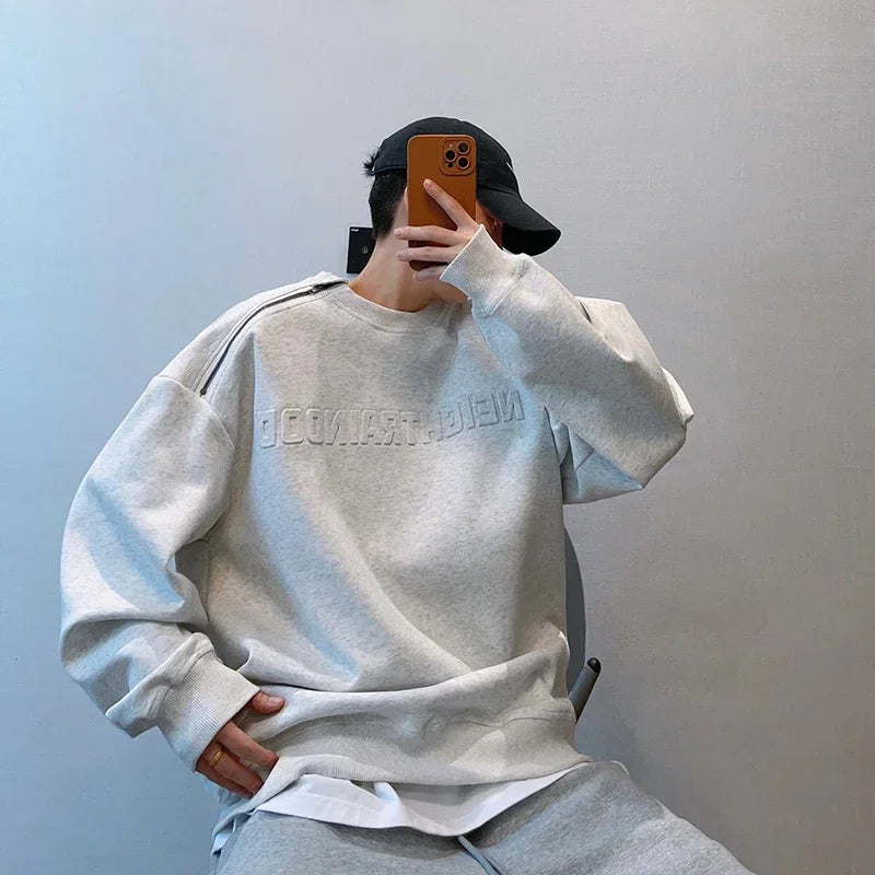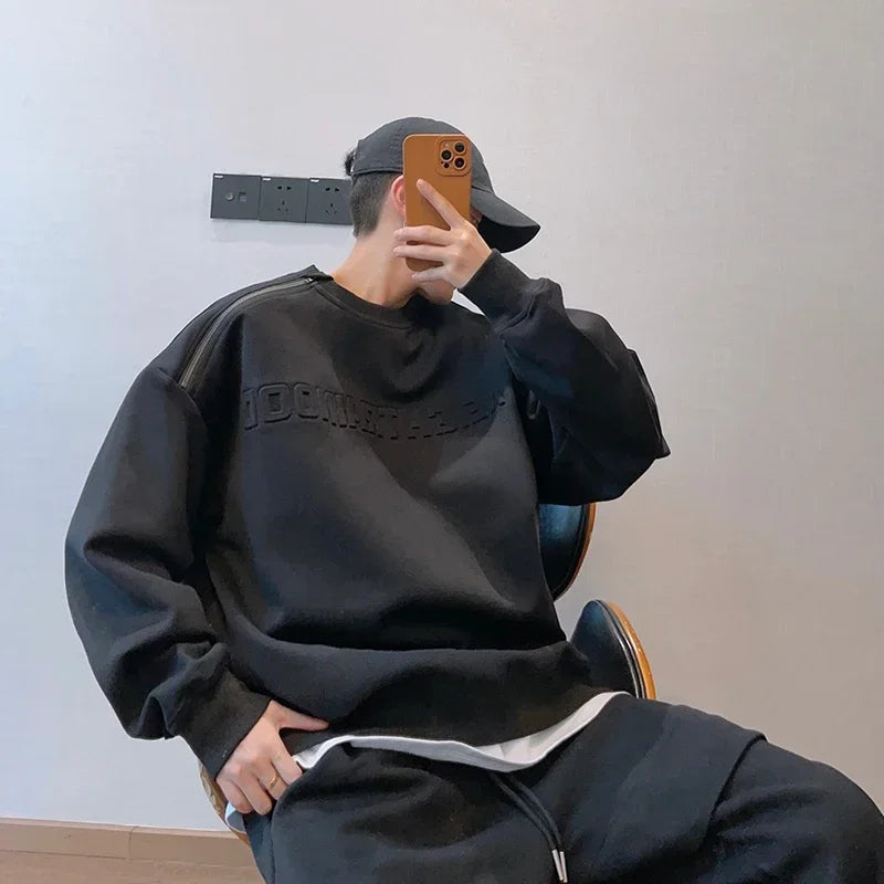 Letter Sweatshirts Men Autumn Baggy Comfortable Blocking High Street American Style Teenagers Stylish Outer Chic Zipper Design