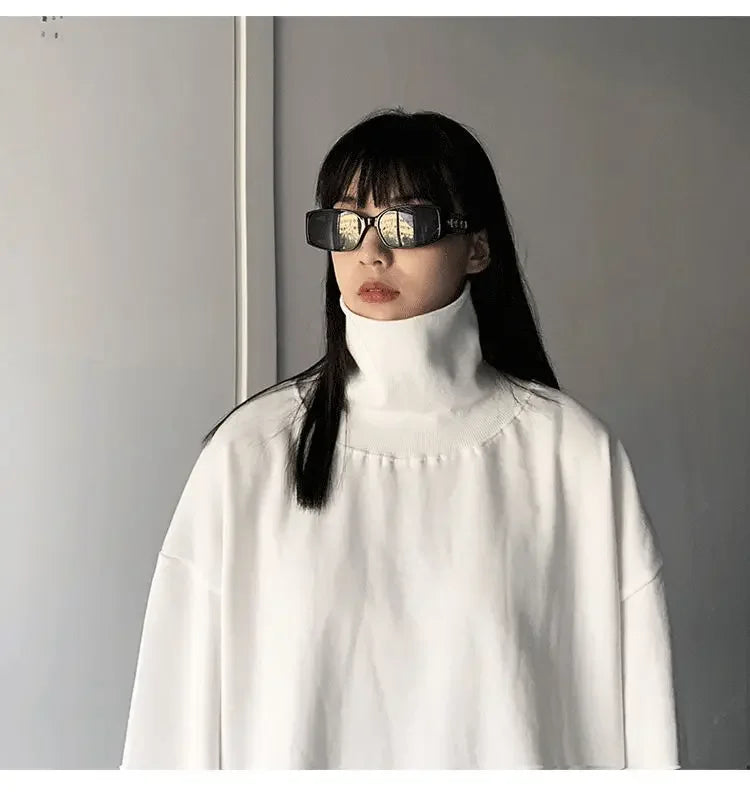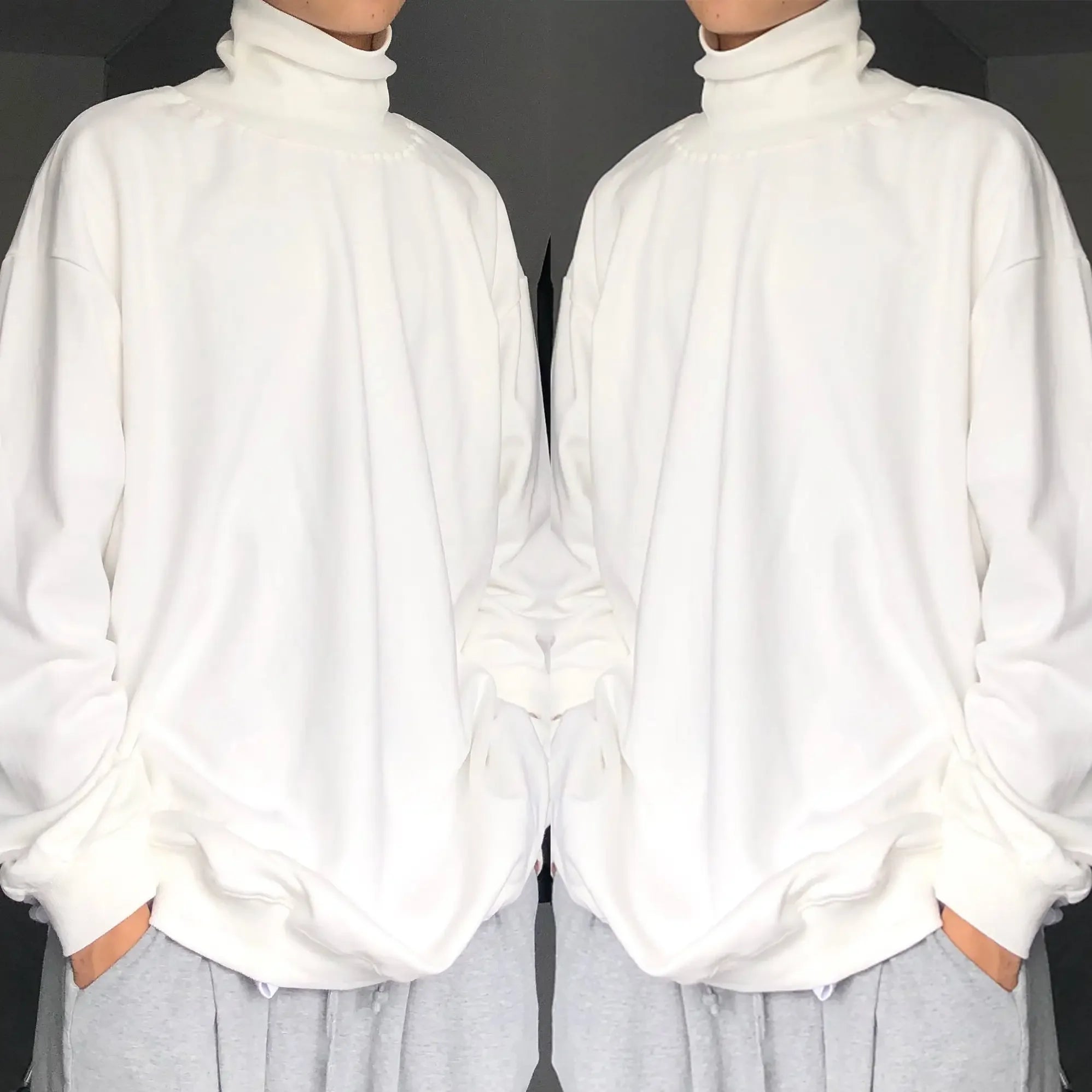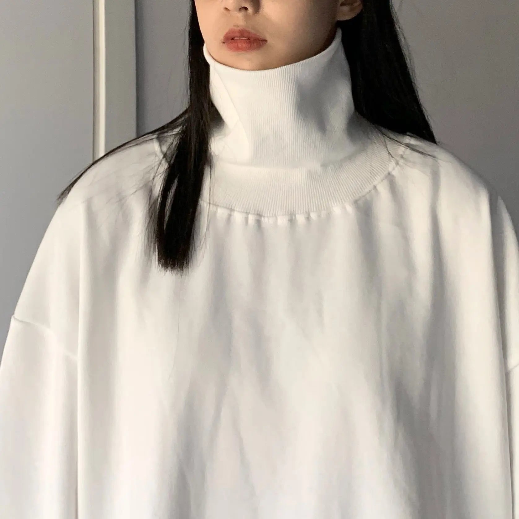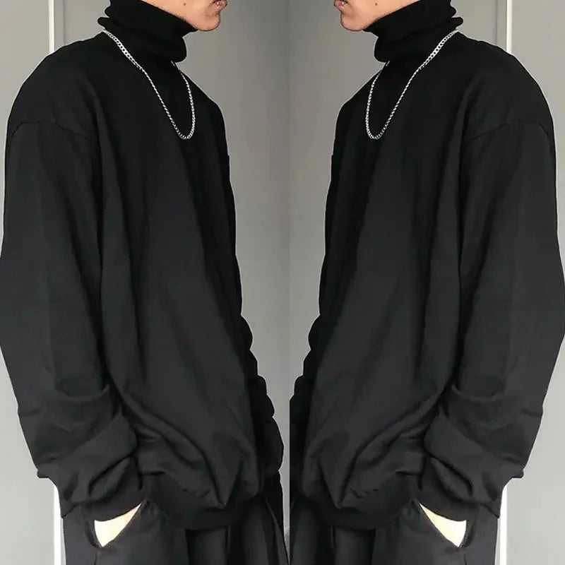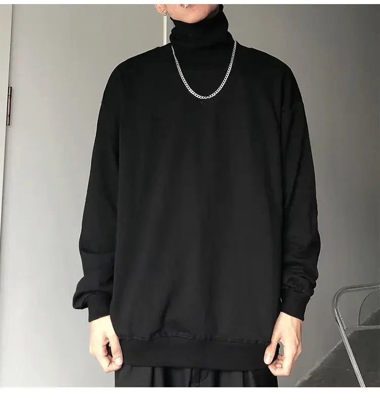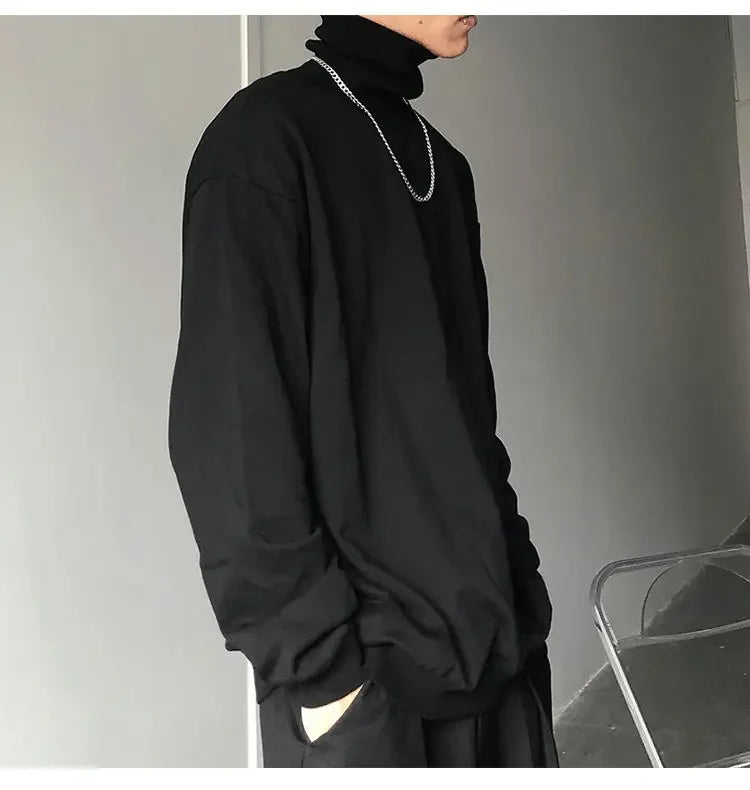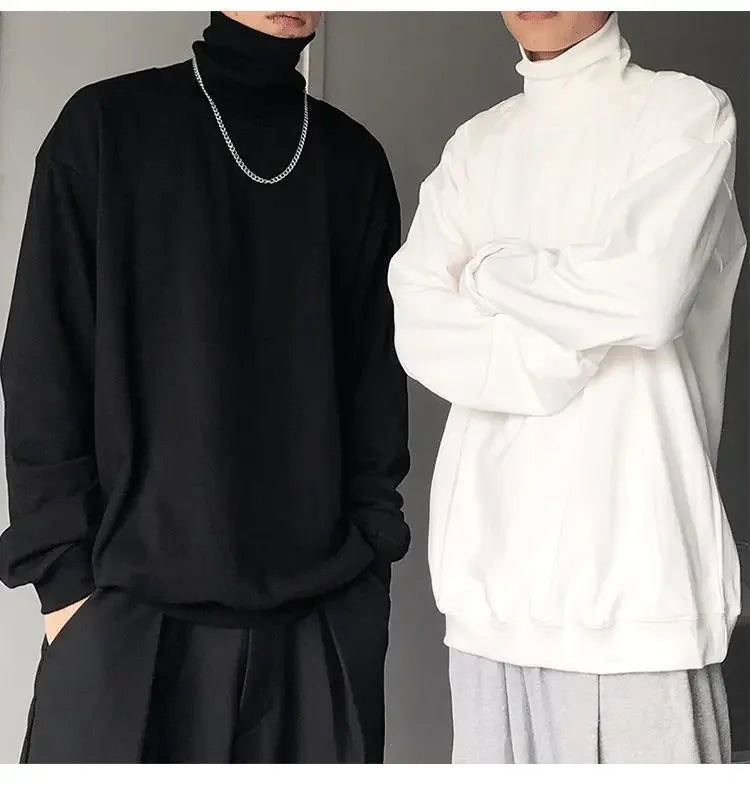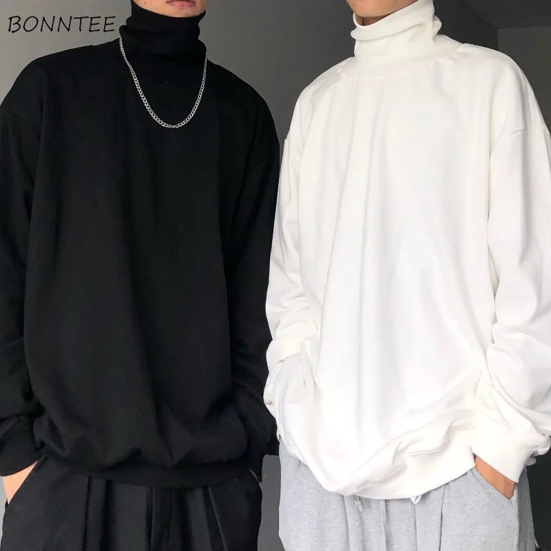 Turtle Neck Long Sleeve T-shirts Men Plus Velvet Warm Basic Solid Korean Style Loose CouplesTops Mens Clothes Streetwear Ins