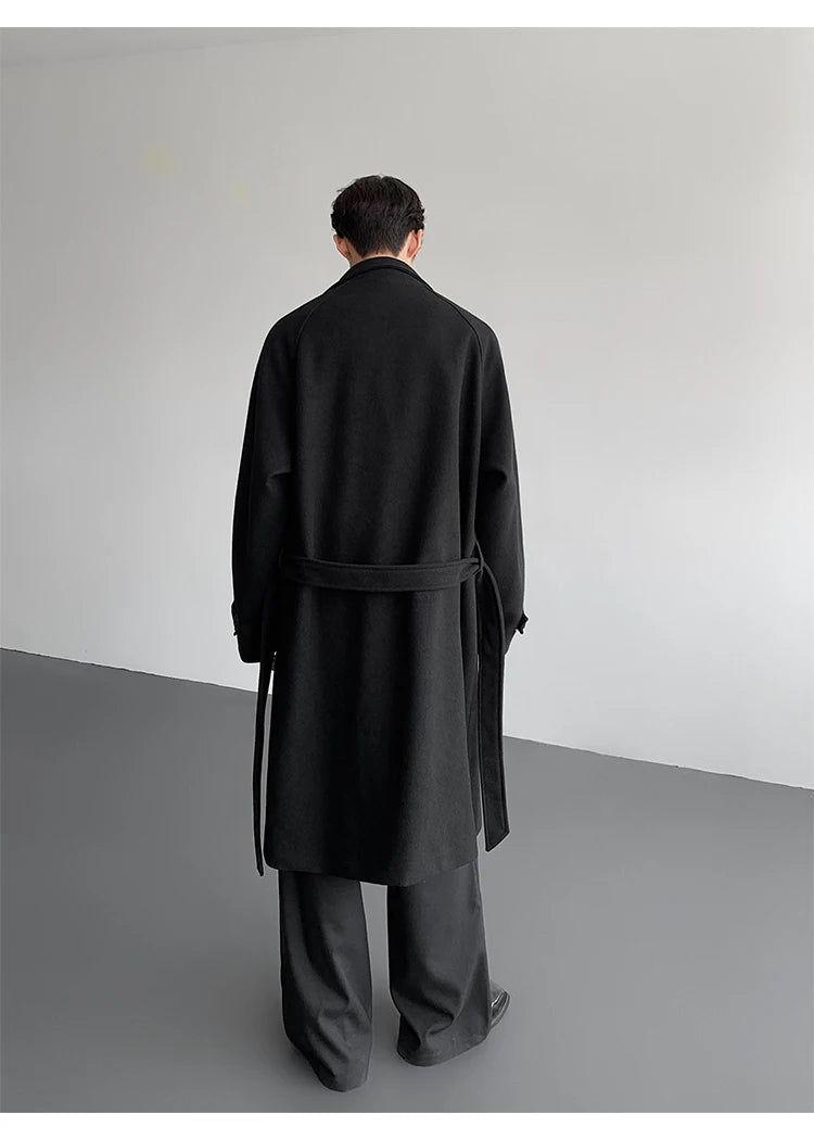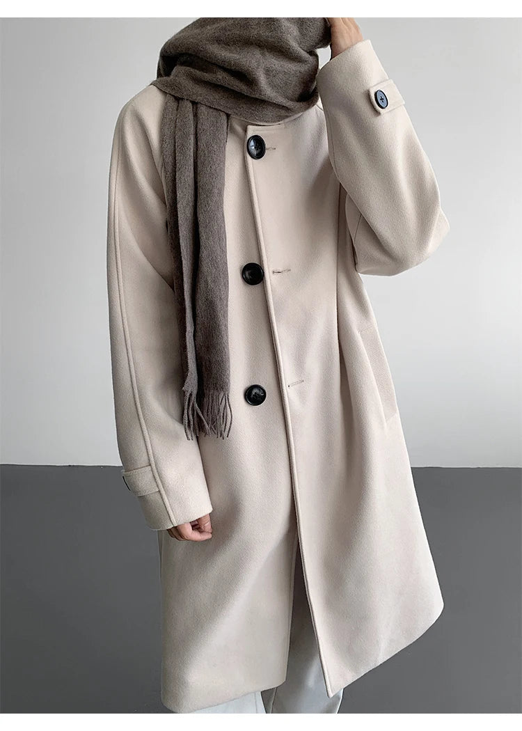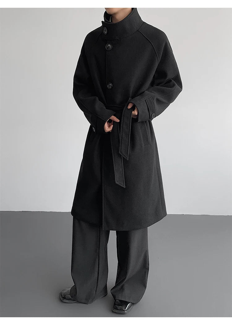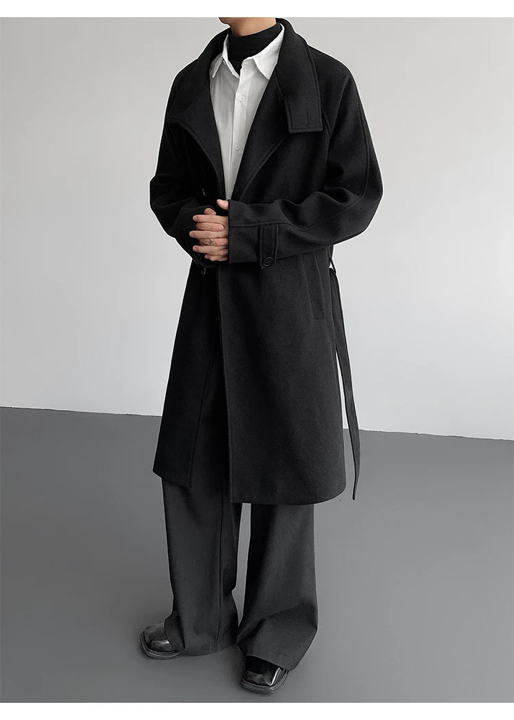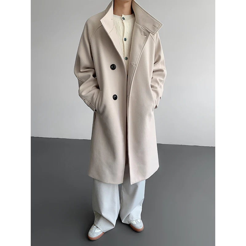 2025 New Autumn Winter Mens Imitation Wool Trench Coat Mid Length Stand Collar Solid Color Windproof Warm Two Button Outerwear